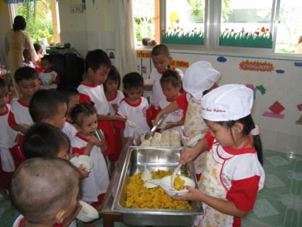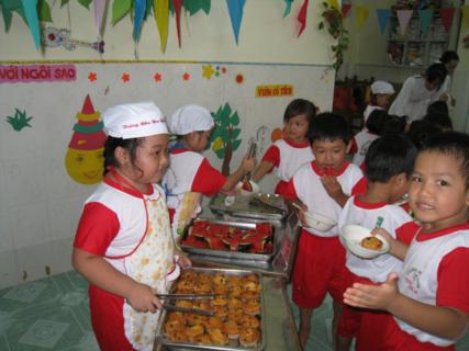 Sau phần lễ khai giảng, trường đã tổ chức “Lễ Hội Buffet Tuổi Thơ” để giúp các bé làm quen với mô hình văn hóa ẩm thực hiện đại.