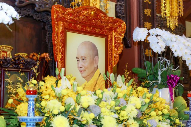 Theo hồi chuông trống Bát nhã, chư Tăng tại Viện đồng thanh niệm Phật tiễn đưa Người Cha lành trở về quê xưa cảnh cũ và viên thành hạnh nguyện.