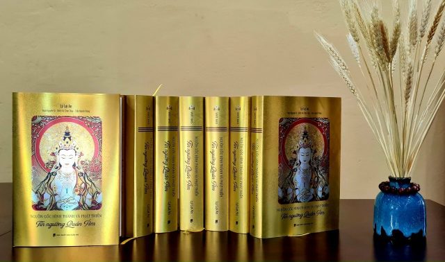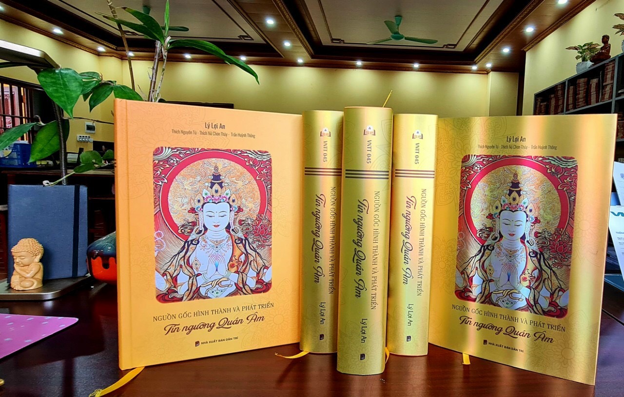 Sài Gòn những ngày gần đây thật buồn! Số ca bệnh vì Covid-19 ngày một tăng nhanh, những bệnh nhân chuyển nặng cũng nhiều hơn. Chưa bao giờ tôi thấy Sài Gòn mệt mỏi như thế, nơi này vốn được mệnh danh là “thành phố không bao giờ ngủ”, nay lại lặng yên như tờ, không một tiếng động. Người dân Sài Gòn đang thực hiện chỉ thị 16 của Chính phủ, còn những người con gái của Đức Thế Tôn như chúng tôi đang an yên trong mùa an cư kiết hạ. Đối trước tượng đài Bồ tát Quán Âm, tôi như cảm nhận được nguồn năng lượng từ bi từ Ngài truyền cho. Huynh đệ chúng tôi cùng phát nguyện trì chú Đại Bi cầu nguyện cho đại dịch chóng qua, để người dân khắp nơi trở về cuộc sống thường nhật. Khi lắng lòng đọc những câu chú, tôi thấy hình ảnh Bồ tát Quán Âm hiện hữu khắp cõi nhân gian, với tâm từ bi hóa hiện mọi thân tướng vi diệu nhằm để chúng sinh “hữu cầu tất ứng”. Tôi thật sự mong muốn đi tìm câu trả lời cho chính mình về nguồn gốc hình thành và phát triển tín ngưỡng Quán Âm. Và thật may mắn khi nhận được món quà từ sư chị gửi tặng, đó chính là cuốn sách Nguồn gốc hình thành và phát triển tín ngưỡng Quán Âm của tác giả Lý Lợi An, được nhóm dịch giả Thích Nguyên Tú – Thích Nữ Chơn Thủy – Trần Huỳnh Thông làm việc tại Trung tâm Biên phiên dịch Tư liệu Phật giáo Quốc tế Vĩnh Nghiêm Tùng thư thực hiện, với độ dày hơn 700 trang. Đặc biệt bìa sách được thiết kế với tôn dung Bồ tát Quán Thế Âm trên nền vàng hướng đến màu huỳnh y giải thoát.