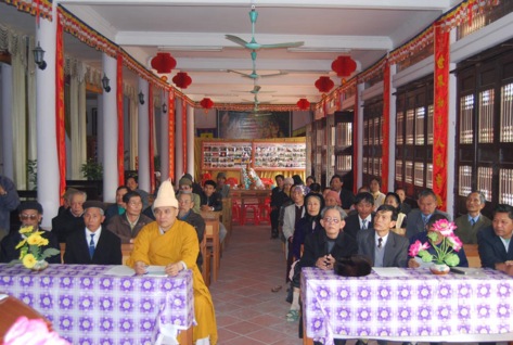 Thượng toạ nói: “Ngoài đời quý vị có Huyết mạch, trong chùa chúng tôi có Đạo mạch. Quý vị là con cháu huyết mạch của Tổ, chúng tôi là con cháu đạo mạch. Tôi rất xúc động khi hôm nay được đón tiếp quý vị. Tôi mong rằng chúng ta sẽ gắn bó đoàn kết xây dựng quê hương giàu đẹp, xây dựng chốn thiền môn hưng thịnh là báo đáp được phần nào công đức của Tổ. Tôi tin tưởng rằng Tổ sư Như Cảm hôm nay cũng đang chung vui cùng với chúng ta .………”