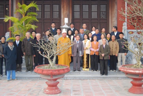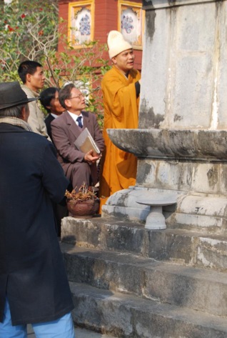 Trước khi tổ chức buổi gặp mặt, Thượng toạ viện chủ đã hướng dẫn toàn phái đoàn thắp hương bái Phật, lễ Tổ tại chính điện chùa, Tổ đường và vườn tháp chùa – nơi tôn trí Bảo tháp Trung đạo thờ Xá lợi Thiền Sư Như Cảm.
