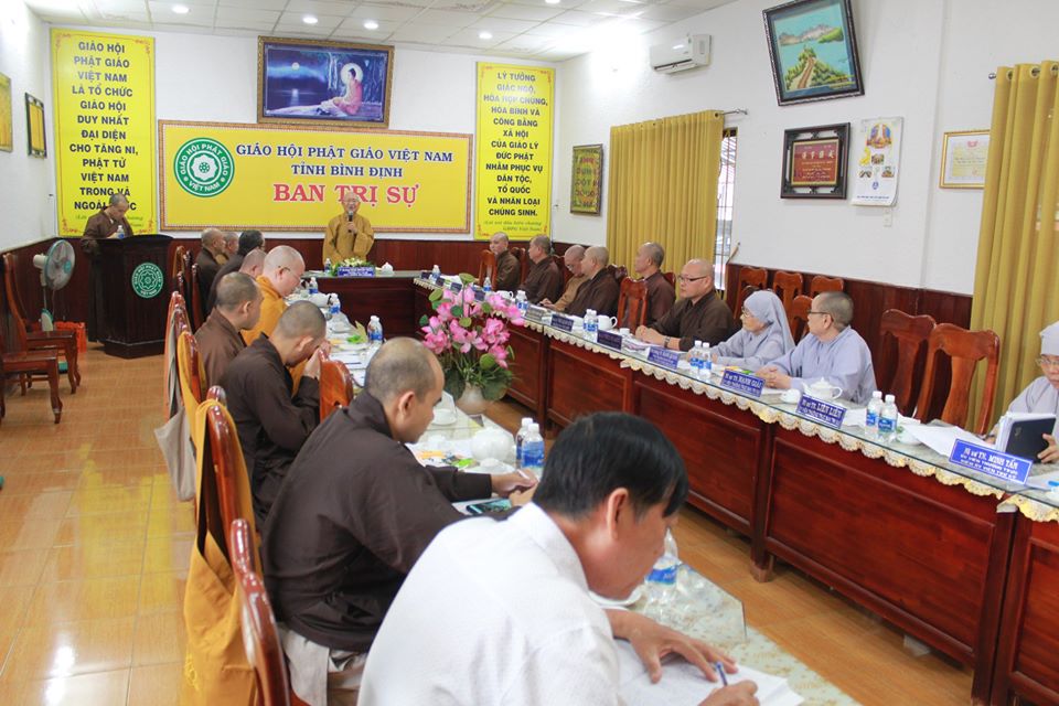 Cuộc họp dưới sự chủ tọa của HT. Thích Nguyên Phước, UVTT. HĐTS, Trưởng Ban Trị sự kiêm Trưởng Ban Tăng sự GHPGVN tỉnh Bình Định cùng chư Tôn đức Tăng Ni, cư sĩ là thành viên Ban Thường trực Ban Trị sự tỉnh.