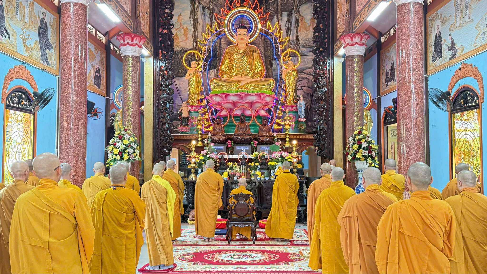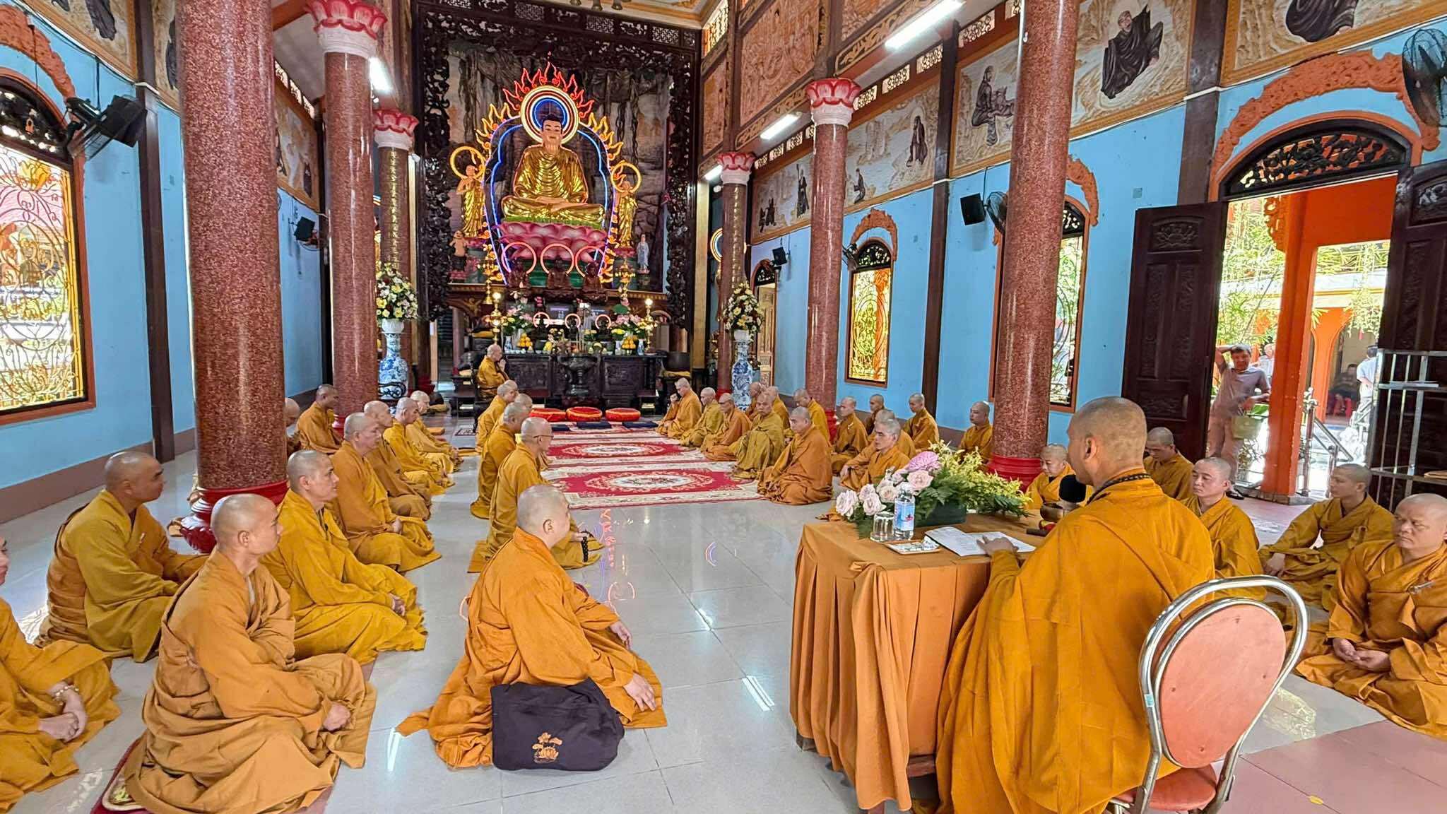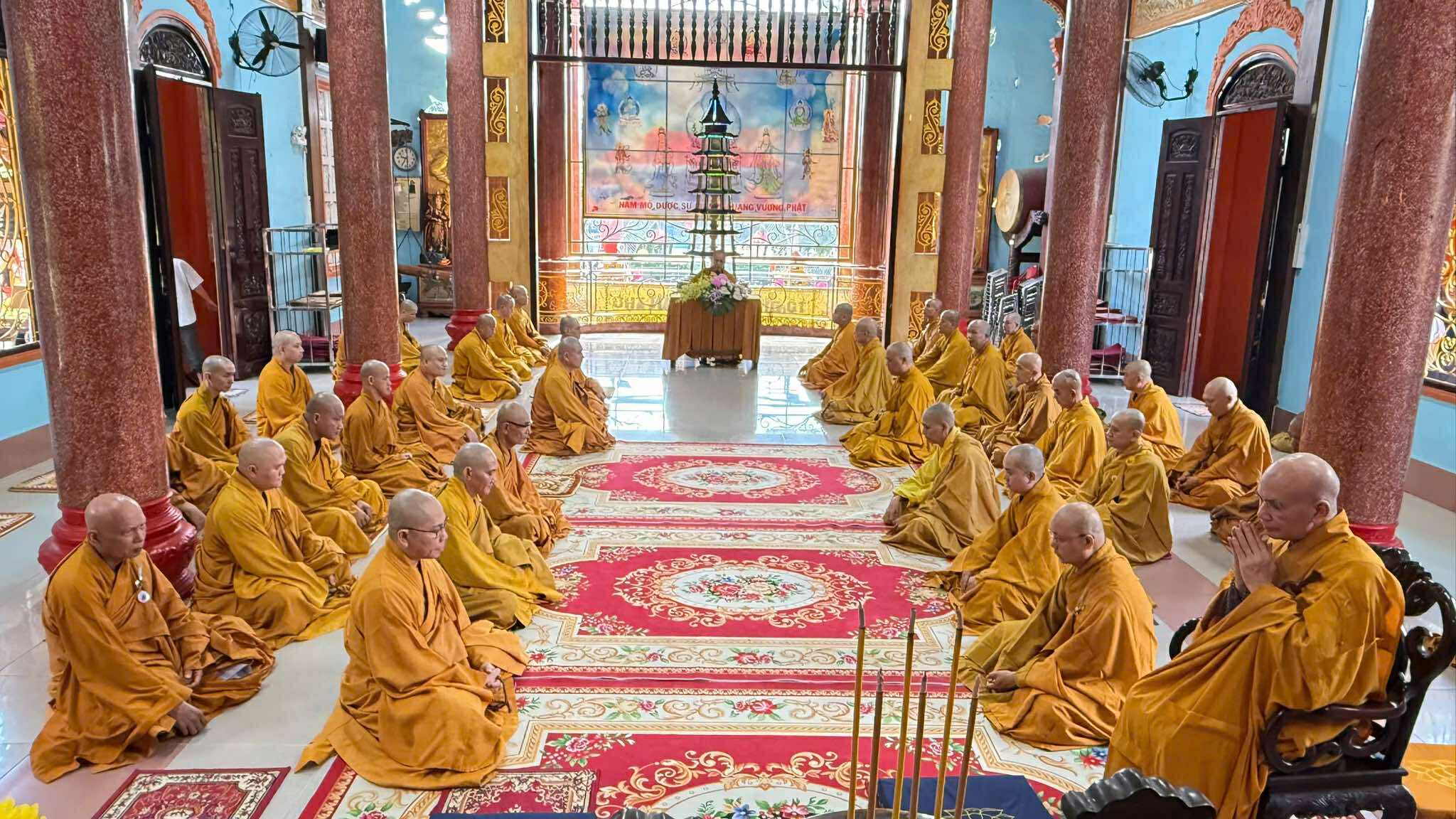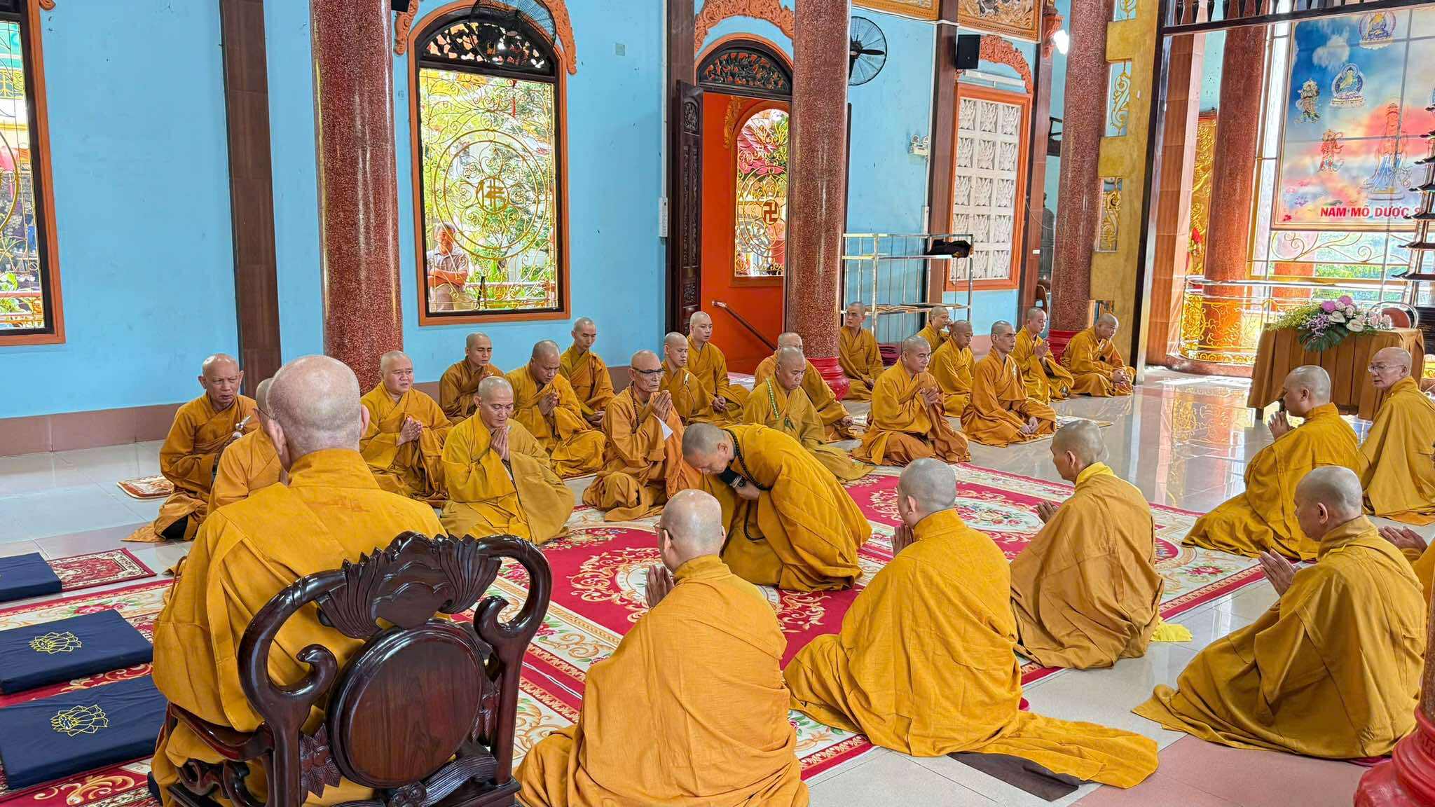 Sáng ngày 1-7 năm Ất Tỵ (nhằm ngày 23-8-2025 ), chư Tôn đức Tăng tại trường hạ Tổ đình chùa Vạn Thọ (247 Hoàng Sa,P.Tân Định, TP.HCM) dưới sự hướng dẫn của Hoà thượng Thích Thanh Tùng đã vân tập Đại hùng bảo điện thực hiện lễ Bố-tát trì tụng luật Tỳ kheo giới kinh theo truyền thống.