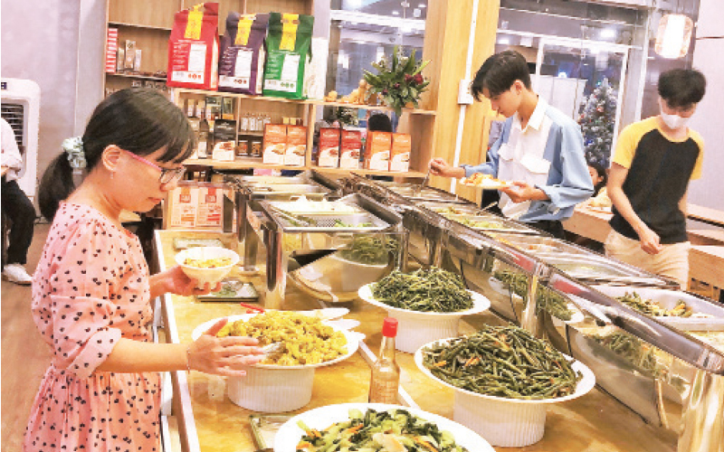 Hàng chục món chay ở Mãn Tự Vegan phục vụ mọi thực khách đến quán.