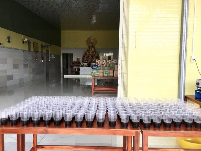 Ni sư Tuệ Liên đã hướng dẫn Phật tử tích cực làm nhiều loại nước uống như nước cam tươi, nước dừa, sữa đậu nành, chanh muối, sương sa, tắc xí muội, nước trái cây… chia sẻ trong tình thân hữu mùa Covid-19 trên địa bàn huyện Vĩnh Hưng, tỉnh Long An.