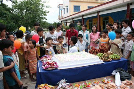 14g – 17g30 chiều ngày 27-7, hơn 50 tình nguyện viên của Ngàn Hạc Giấy đã mang lỉnh kỉnh đồ đạc, truyện tranh và cả bánh sinh nhật đến mừng sinh nhật của nhóm bằng việc tổ chức sinh nhật chung cho các em mồ côi ở chùa Long Hoa. 800 quyển truyện cùng một kệ sách được các tình nguyện viên mang đến tặng cho các em nhỏ ở đây là món quà thật sự có ý nghĩa.