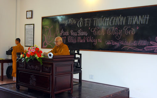 Trong Tăng Ni sinh chúng con chưa ai có thể quên, nơi đây, 10 năm trước, một vị giảng sư đã tận tụy truyền trao những tâm huyết và cống hiến tấm lòng nhiệt thành của mình cho ngôi nhà giáo dục Phật giáo Việt Nam, đó là Cố TT giảng sư Thích Chơn Thanh – Ủy viên HĐTS, nguyên Phó văn phòng 2 TW GHPGVN, trưởng ban hoằng pháp thành hội Phật giáo TP. HCM, giảng sư các trường Cao đẳng và Trung cấp Phật học tại TP.HCM.