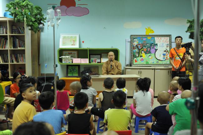 Những người tham gia chương trình đều không khỏi xúc động, khi nhìn thấy những gương mặt ngây thơ, nhưng “đầy ám ảnh” của những em nhỏ trong khoa H6. Đôi tay bé nhỏ non nớt vẫn cắm từng ống truyền lạnh lẽo, nhưng nụ cười vẫn rạng ngời trên những khuôn mặt tái xanh vì bệnh tật, tiếng các em hát ca rộn ràng cả một góc viện khiến ai nấy đều xót xa. Khi nghe Đại đức Thích Thanh Tâm – Ủy viên Ban Hoằng pháp TW chia sẻ, không ít những vị phụ huynh đã ôm con mình mà bật khóc. Những giọt nước mắt cố nén chặt, những nỗi đau không thể nói thành lời ấy cứ đeo bám mãi trong tâm trí cả đoàn, để rồi day dứt cứ khôn nguôi. Day dứt bởi chẳng thể làm được gì nhiều cho bệnh nhân, day dứt bởi mọi lời nói đểu chẳng thể đủ để sẻ chia, mọi cái ôm đều chưa đủ ấm áp với những thân hình nhỏ bé đang chịu đựng từng đợt chữa trị, xạ trị vô cùng đau đớn. Những mầm non ấy, những chủ nhân tương lai ấy còn chưa kịp trưởng thành đã phải chịu những cơn đau đớn do bệnh tật dày vò mỗi ngày. Nhưng bản thân các em lại chính là những chiến binh dũng cảm khiến chúng tôi cảm phục, bởi tuy đau đớn nhưng gương mặt các em vẫn rạng rỡ những nụ cười, vẫn chưa từng một lần kêu đau chỉ vì sợ “con đau một, cha mẹ đau gấp mười”. Tại đây, chúng tôi cũng đã gặp một cô bé nhỏ nhắn đã 10 năm chống chịu với bệnh ung thư máu, nhưng cô bé ấy chưa từng mất niềm tin vào cuộc sống, chưa một lần đầu hàng số phận. Bởi cô bé ấy tin rằng “sau cơn mưa trời lại sáng”, rồi bệnh tật sẽ bị đẩy lùi, và cô bé sẽ có một tương lai dài thênh thang phía trước…