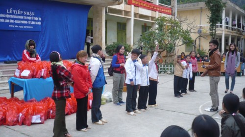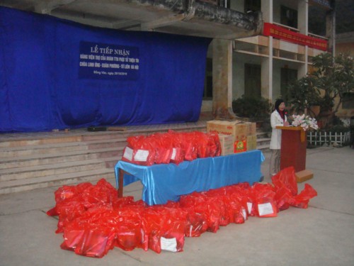 Sau gần 2 tháng chuẩn bị, nhận được sự ủng hộ, quyên góp và giúp đỡ của các “trái tim nhân ái” – các Phật tử xa gần, các tấm lòng hảo tâm, và một số nghệ sĩ, Đoàn từ thiện đã lên đường thăm hỏi, động viên và trao tặng 400 suất quà học sinh (1 suất gồm: 10 quyển vở; 10 bút bi; 1 đôi tất; 1 mũ len; 1 hộp sữa đặc); trao 200 suất quà gia đình (1 suất gồm: quần áo, 1 chăn bông, 1 hộp sữa đặc, 1 gói đường, 10 gói bột canh, 10kg gạo); trao 2 suất quà tặng Đồn Biên Phòng 169 Lũng Cú và Trạm bộ đội dưới chân Cột Cờ Lũng Cú; trao tặng hơn 1000 bộ quấn áo các loại … với tổng trị giá lên tới gần 100 triệu đồng.