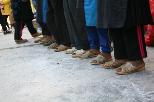 Chúng tôi đã gặp một em bé đi ngang qua với bộ quần áo mỏng manh, đôi chân trần dưới lớp dép tổ ong đã cũ và có phần rách kia đã thu hút được sự chú ý của mọi người.