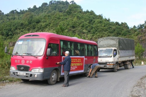Đoàn chúng tôi khởi hành xuất phát khi đồng hồ điểm 22h30 (ngày 28.10), những tiếng cười đùa, những câu chuyện phiếm, những lời ca tiếng hát không ngừng được vang lên như để xua tan đi cái giá lạnh của trời về đêm, như để xua tan đi căng thẳng, mệt mỏi của một chuyến hành trình dài đang chờ đợi phía trước.