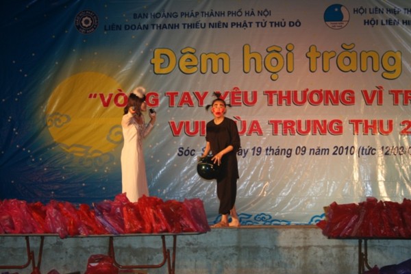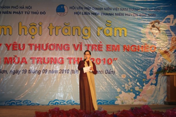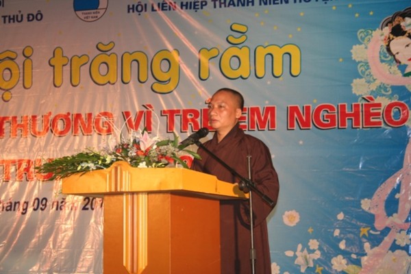 Trong bài phát biểu, ĐĐ. Thích Chiếu Tuệ cho biết "Liên đoàn TTNPT Thủ đô phối hợp cùng Hội LHTNVN huyện Sóc Sơn tổ chức “ĐÊM HỘI TRUNG THU – VÒNG TAY YÊU THƯƠNG VÌ TRẺ EM NGH ÈO 2010” cho 1000 trẻ em nghèo của huyện Sóc Sơn với mục đích muốn cho các em cũng có một đêm trung thu lành mạnh, bổ ích, lý thú."