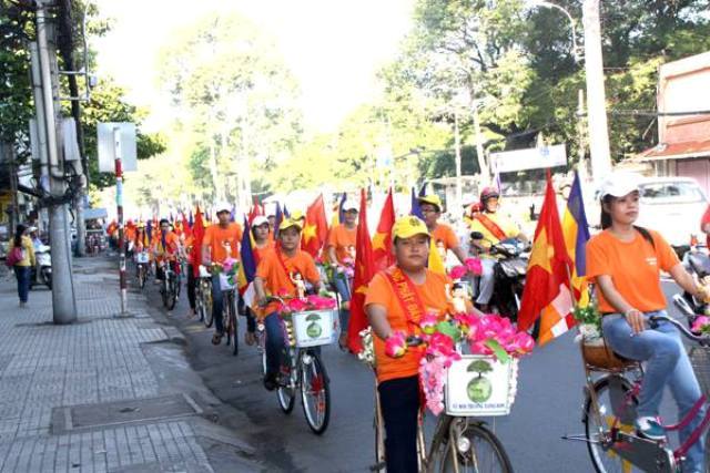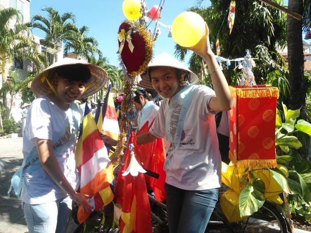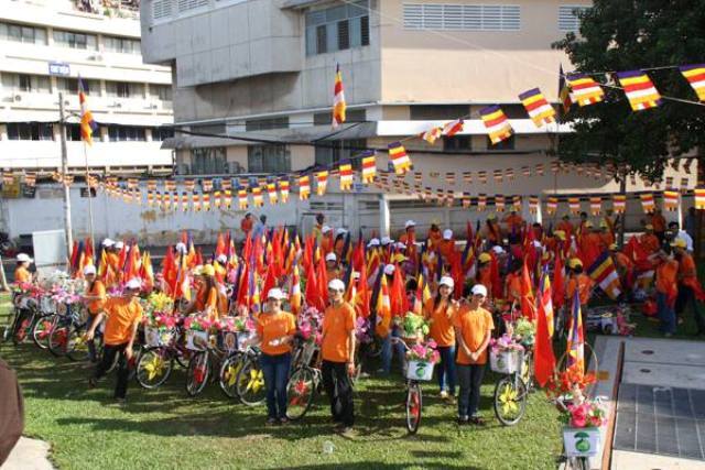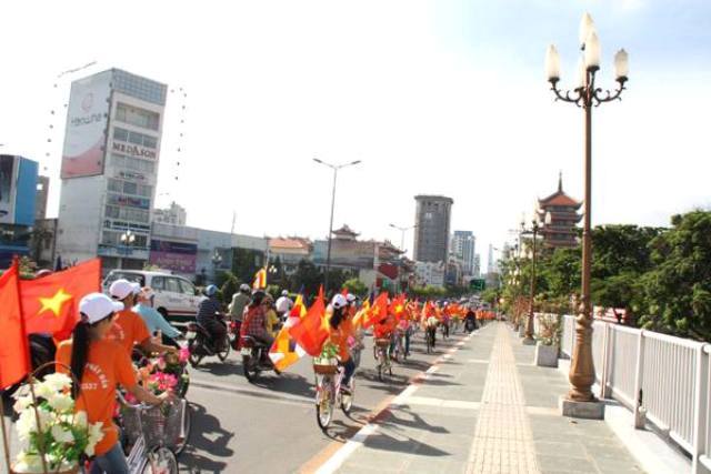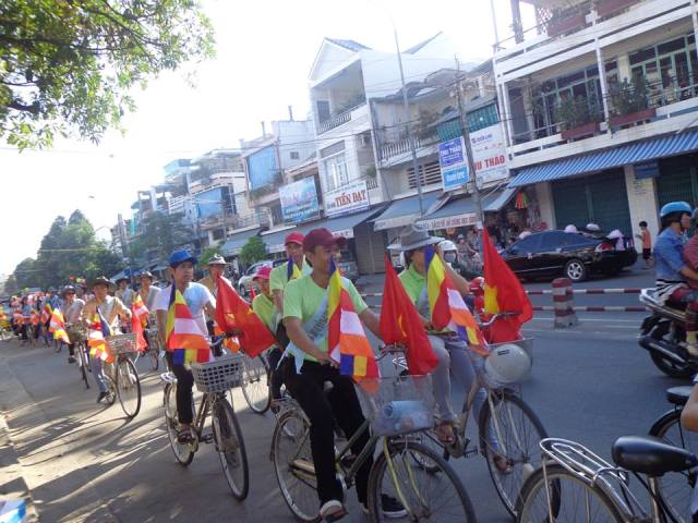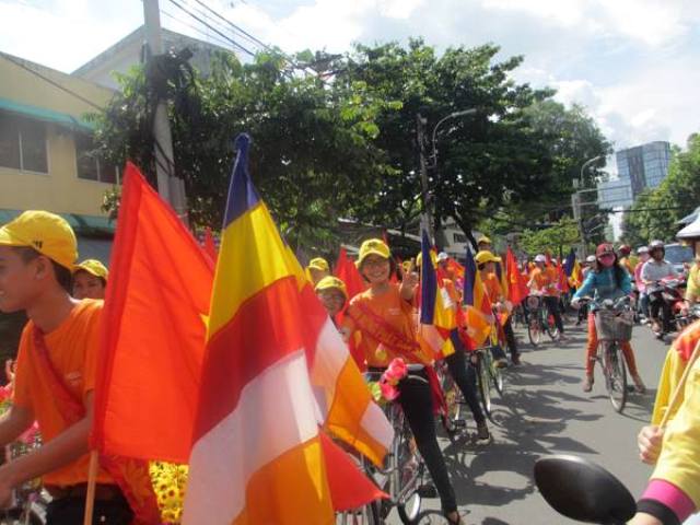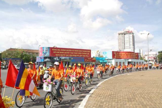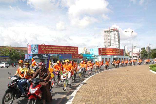Tại Tp. HCM, thanh thiếu niên Phật tử chùa Phước Hải (Quận 10), chùa Giác Tâm (Quận 5), chùa Trấn Quốc (Q.10) diễu hành xe đạp hoa khắp các quận, trung tâm thành phố, mang theo thông điệp “Happy Vesak”, “Vì môi trường xanh hơn”. Trải qua các trục lộ chính, chợ Bến Thành, đoàn dừng chân tại các Chùa, lễ Phật, chiêm ngưỡng lễ đài Phật đản. Đoàn đã đến đài Tưởng niệm Bồ tát Thích Quảng Đức, nơi mang dấu ấn thiêng liêng của “ngã tư Phan Đình Phùng, Lê Văn Duyệt”, dâng hương đèn, thành tâm đảnh lễ và hữu nhiễu quanh tôn tượng Bồ tát Quảng Đức đã thắp lên ngọn lửa Tam muội, để lại khối kim cang bất hoại, nhằm giữ vững cơ đồ của Đạo pháp và Dân tộc.
