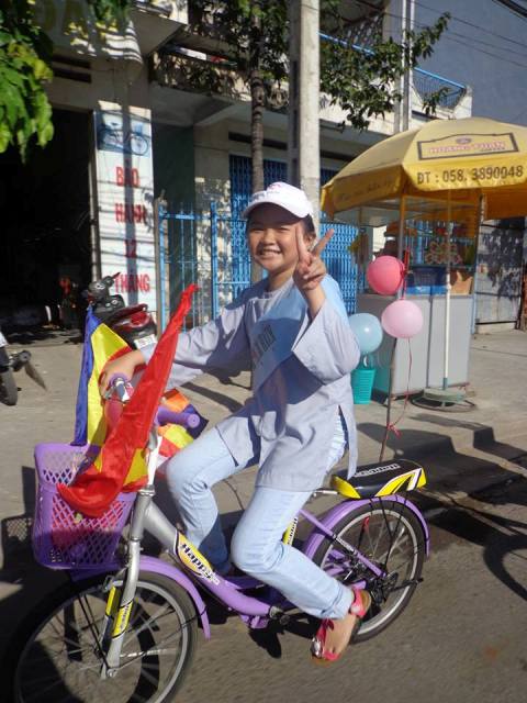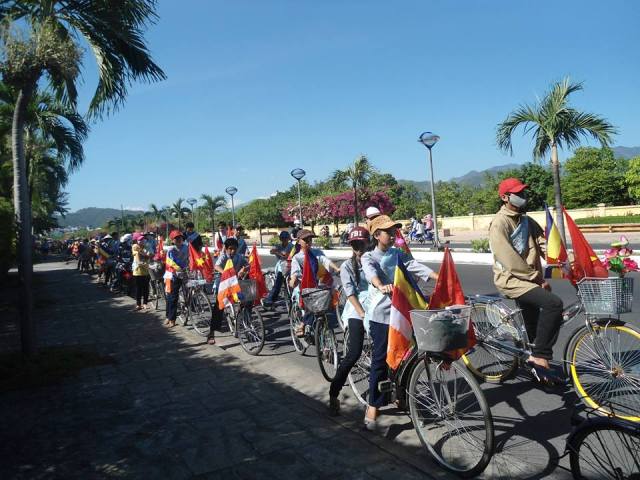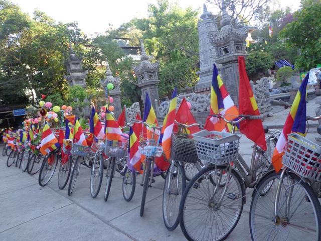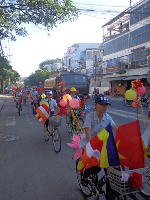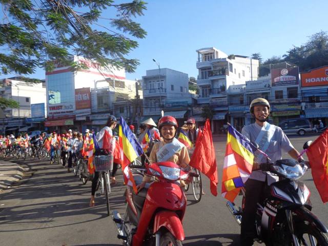 Tại Khánh Hòa, gần 250 thanh thiếu niên đến từ các Đoàn Phật tử trong Tp. Nha Trang: Gia đình Phật tử Khánh Hòa, đoàn Thiện Sinh, Thiện Pháp, Kim Quang, Tuệ Uyển, CĐ Y tế Khánh Hòa… đã tham gia đoàn xe đạp hoa thăm viếng các chùa mùa Phật đản. Hành trình bắt đầu từ Chùa Long Sơn, nơi tổ chức sự kiện lễ Phật đản và Kỷ niệm 50 năm Bồ tát Quảng Đức, vị pháp thiêu thân. Sau lời huấn từ và sách tấn của HT. Thích Minh Thông và HT. Thích Nguyên Quang, đoàn xe đạp khởi qua các đường phố trong Tp. Nha Trang, dừng chân đảnh lễ và lắng nghe đạo từ quý Tôn đức các tự viện: Diệu Quang, Nghĩa Minh, Kỳ Viên. Trên hành trình, đoàn nghỉ chân, sinh hoạt tại Quảng trường 2/4, Tháp Trầm Hương giữa biển trời mênh mông, đồng thời hướng về tưởng niệm sự hi sinh vì đạo pháp của Phật tử Yến Phi khi đoàn đạp xe ngang qua công viên mang tên chị.