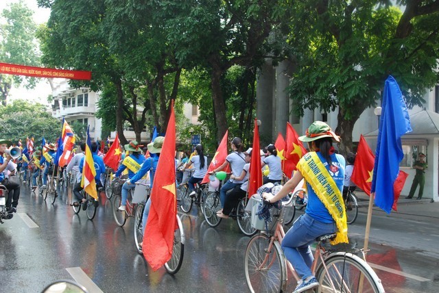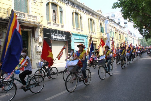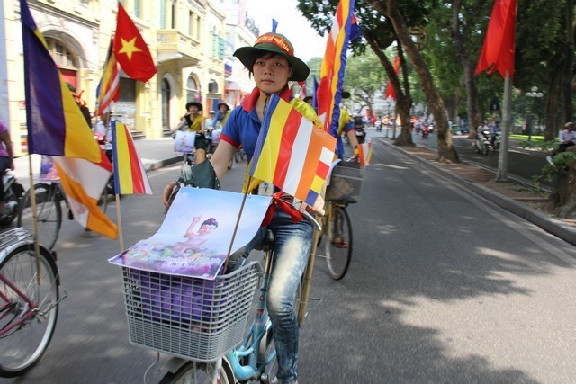 Tại Hà Nội, hơn 200 bạn trẻ từ CLB 14 chữ cùng CLB TNPT Chùa Quán Sứ, Thanh niên Phật tử Chùa Tuệ Quang, Đoàn viên ĐH Công Nghiệp Hà Nội, ĐH Công Nghệ giao thông vận tải đã tham gia đoàn diễu hành xe đạp. Khởi động từ Chùa Trấn Quốc, đoàn đi qua các con đường trong Thủ đô, dâng hoa tưởng niệm và lễ Phật tại Chùa Hòe Nhai, Chùa Lý Triều Quốc Sư, Chùa Quán Sứ. Kết thúc hành trình là chuyến tặng quà từ thiện cho các gia đình và trẻ nhỏ có hoàn cảnh khó khăn tại Sông Hồng.