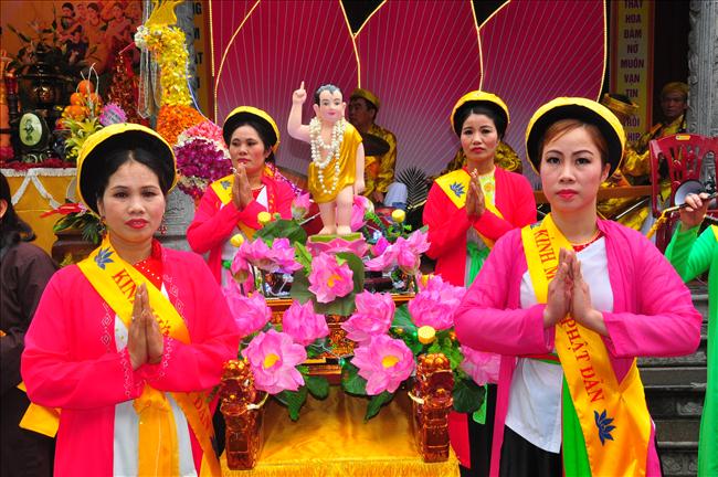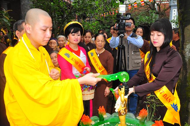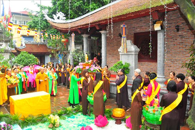 Đúng 9h00 sáng, ban nghi lễ đã cung nghinh Đại đức trụ trì quang lâm pháp đường và có thời pháp thoại chia sẻ với hàng Phật tử về ý nghĩa nghi thức tắm Phật. Qua đó, Đại đức đã khuyến tấn hàng Phật tử phải luôn tinh tiến tu tập, sống theo đúng chính pháp mà Đức Phật đã dạy, giữ gìn ba nghiệp Thân – Khẩu – Ý cho thanh tịnh, như thế mới có được an vui, hạnh phúc trong cuộc sống đời thường.