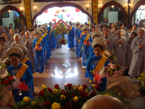 Phật tử đạo tràng khoá tu dâng hoa cúng dường