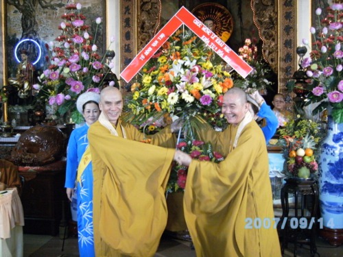 HT. Thích Thanh Sơn – Chánh đại diện Phật giáo Q.1 tặng hoa chúc mừng