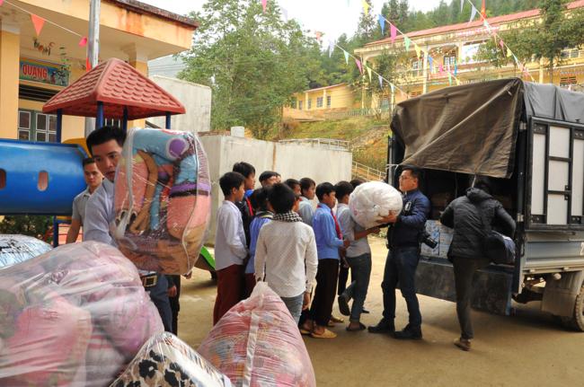 Mỗi phần quà trị giá 500 nghìn đồng, gồm tiền mặt, đồ dùng học tập, sữa và một số nhu yếu phẩm sinh hoạt cần thiết cho mùa đông. Tổng kinh phí cho chuyến từ thiện lần này là gần 250 triệu đồng.