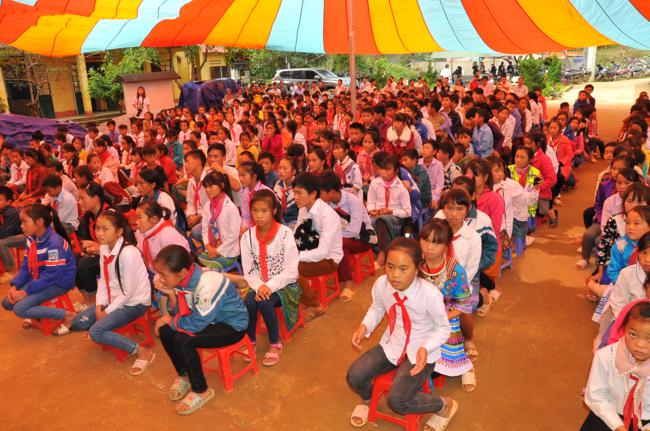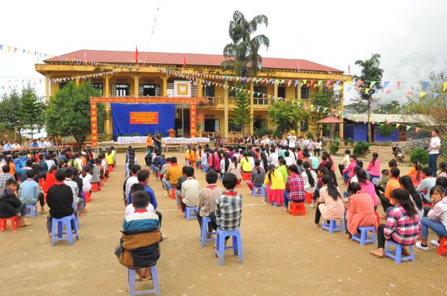 Đoàn đã đến làm việc và tặng quà cho các thầy cô giáo và các em học sinh tại 3 điểm trường: Trường PTDTBT THCS Tả Gia Khâu, Trường THCS xã Dìn Chin và Trường THCS xã Pha Long thuộc huyện Mường Khương, tỉnh Lào Cai.