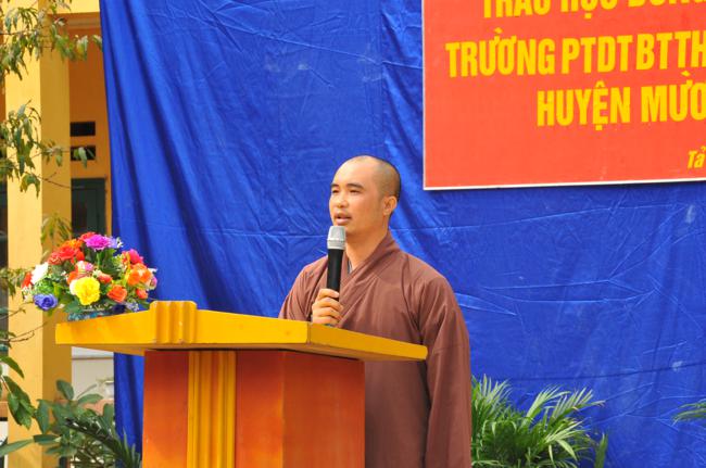 Cũng trong dịp này, TT. Thích Chiếu Tạng và đại diện Sở GD-ĐT tỉnh Lào Cai cũng đã gửi lời chúc mừng những thành tích dạy và học của nhà trường trong thời gian qua, chúc các thầy cô vững tâm cắm bản, cống hiến cho sự nghiệp trồng người, chúc các học sinh chăm ngoan, khắc phục khó khăn để học tốt. Qua đó, TT. Chiếu Tạng nhấn mạnh, đầu tư cho giáo dục luôn cần thiết và đúng đắn, đặc biệt là đối với huyện vùng cao biên giới, có những địa bàn “vùng trũng” bị cô lập, tổn thất nặng nề như Mường Khương.