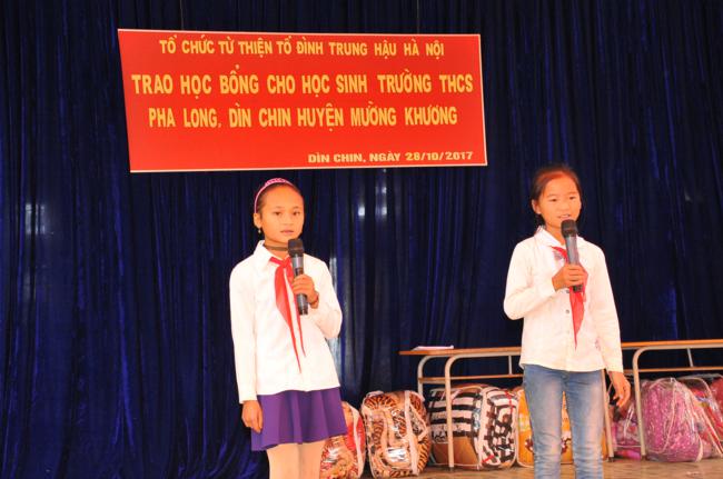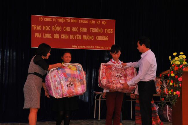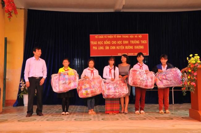 Các em học sinh được nhận học bổng dịp này là những trường hợp có hoàn cảnh đặc biệt khó khăn đã vượt khó vươn lên đạt thành tích học tập tốt do Sở GD-ĐT tỉnh Lào Cai và Ban giám hiệu ba trường THCS trên địa bàn huyện Mường Khương đề xuất xét duyệt. Trong đó, 215 suất được trao cho các học sinh trường THCS Tả Gia Khâu, 165 suất được trao cho học sinh trường THCS Dìn Chin và 120 suất được trao cho học sinh THCS Pha Long.