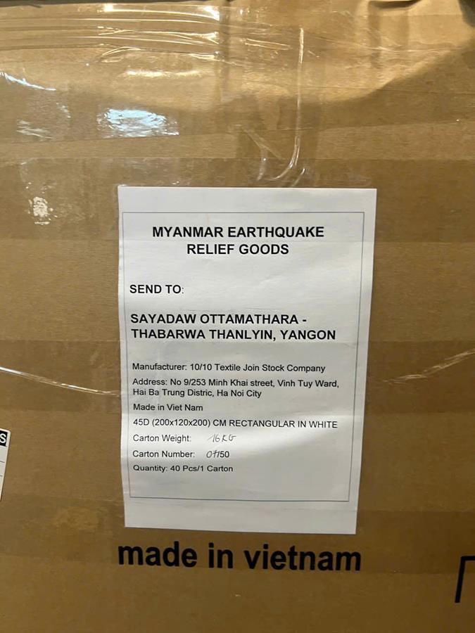 Những ngày cuối tháng 3 và đầu tháng 4/2025, Hưởng ứng lời kêu gọi của Chính phủ và Trung ương Giáo hội Phật giáo Việt Nam, Tổ đình Vĩnh Nghiêm – chùa Long Hưng (Đông Anh, Hà Nội) và Quỹ An Lạc đã phát động chiến dịch cứu trợ khẩn cấp nhằm hỗ trợ chư Tăng Ni, người dân Myanmar bị ảnh hưởng bởi trận động đất mạnh 7,7 độ Richter vừa qua.