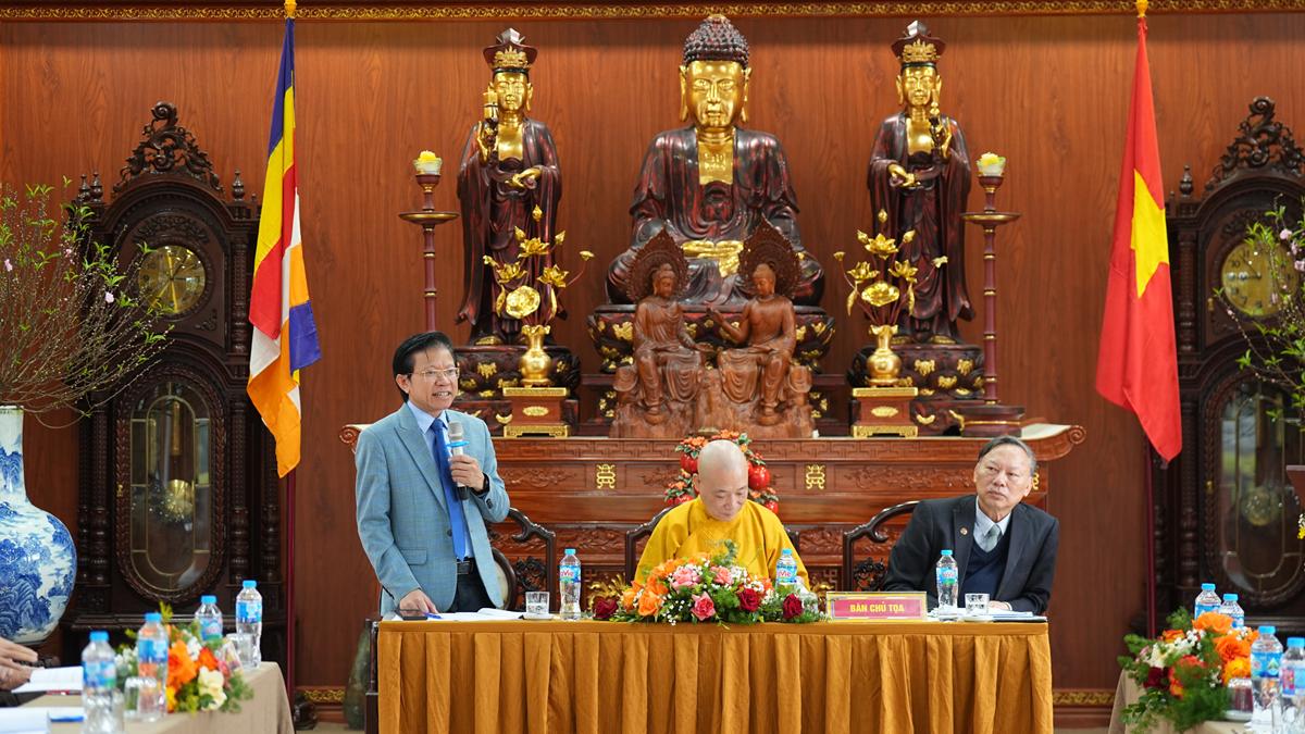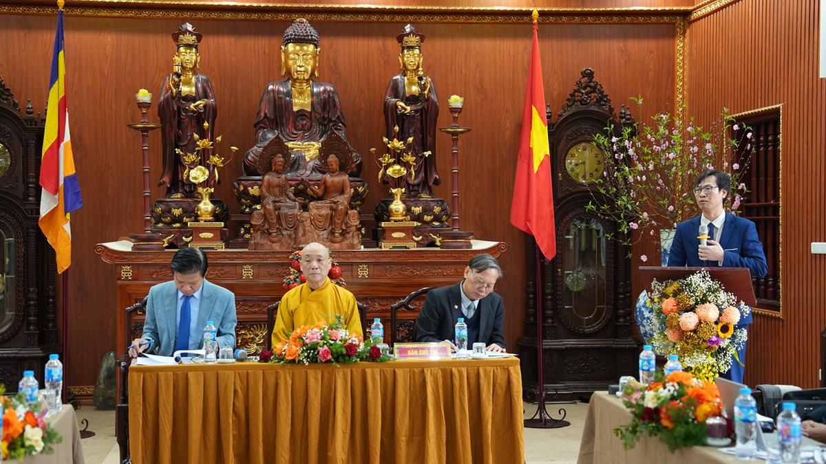 Chủ tọa đoàn là Hòa thượng Thích Bảo Nghiêm – Phó chủ tịch HĐTS, Trưởng Ban Hoằng pháp TW, Trưởng BTS GHPGVN thành phố Hà Nội; GS.TS Nguyễn Quang Ngọc – Phó chủ tịch Hội khoa học lịch sử Việt Nam; GS.TS Hoàng Anh Tuấn – Hiệu trưởng Trường Đại học Khoa học xã hội và Nhân văn.