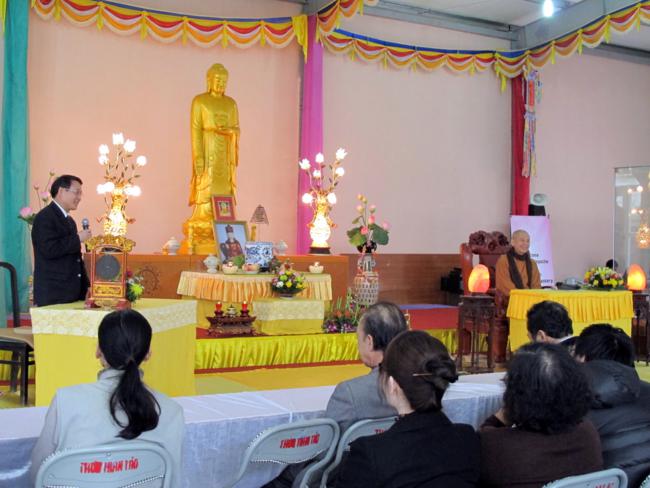 Về phía quan khách đại biểu có: GS.TS Vương Lâm Lĩnh – nguyên Thứ trưởng Bộ KHCNMT; Nhà báo Phương Đông – nguyên Ủy viên Ban Biên Tập Báo Nhân Dân; ông Lưu Thế Dần – Chủ tịch Hội Làng Nghề Việt Nam, và vị khách mời đặc biệt là ông Bùi Hữu Dược – Vụ trưởng Vụ Phật Giáo – Ban Tôn Giáo Chính phủ.