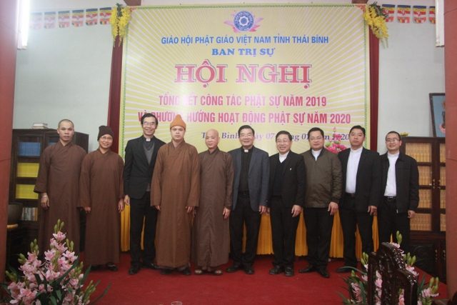 Đoàn đã thay mặt Linh mục Phê rô Nguyễn Văn Đệ, Tổng Giám mục Giáo phận Thái Bình cùng toàn thể đồng bào Công giáo Thái Bình gửi lời chúc tốt đẹp nhất tới BTS PG tỉnh và các Tăng Ni, tín đồ Phật tử trong tỉnh, vui mừng trước những thành tựu của đất nước và tỉnh nhà, phấn khởi trước những thành tựu Phật sự của GHPGVN tỉnh, khẳng định mối đoàn kết gắn bó giữa hai tôn giáo trong đời sống tín ngưỡng, văn hóa tâm linh của nhân dân Thái Bình. Đoàn chúc chư tôn đức và tín đồ Phật tử vui xuân đón Tết an lành, hạnh phúc, gặt hái nhiều thành công trong năm mới.