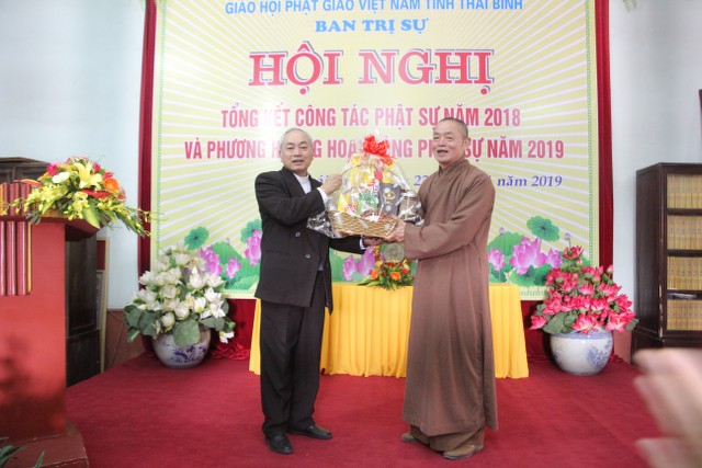 Thay mặt Linh mục Phê rô Nguyễn Văn Đệ, Tổng Giám mục Giáo phận Thái Bình cùng toàn thể đồng bào Công giáo Thái Bình, Linh mục Phanxico Assi Nguyễn Tiến Tám gửi lời chúc tốt đẹp nhất tới BTS PG tỉnh và TT.Thích Thanh Hòa, vui mừng trước những thành tựu của đất nước và tỉnh nhà, phấn khởi trước những thành tựu Phật sự của PG tỉnh, khẳng định mối đoàn kết gắn bó giữa hai tôn giáo trong đời sống tín ngưỡng, văn hóa tâm linh của nhân dân Thái Bình, chúc chư tôn đức và tín đồ Phật tử vui xuân đón Tết an lành, hạnh phúc, gặt hái nhiều thành công trong năm mới.