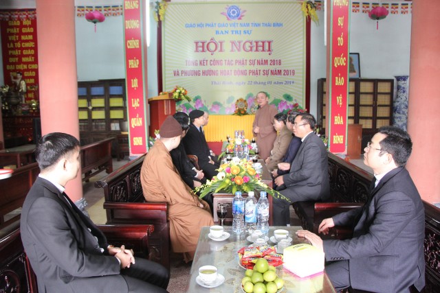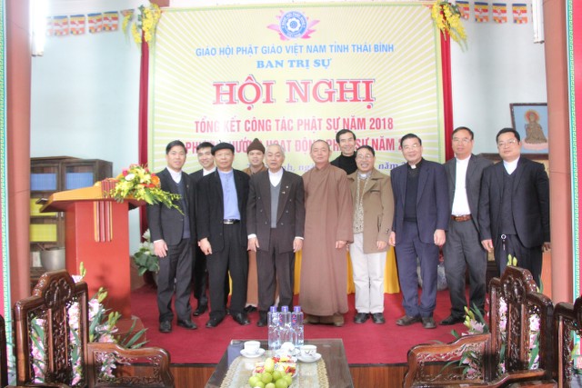 Sáng ngày 23 – 01 (18 – 12 năm Mậu Tuất), đại diện Tòa Giám mục Giáo phận Thái Bình đã đến thăm và chúc Tết BTS PG tỉnh nhân dịp đón Tết Nguyên đán Kỷ Hợi 2019. Đoàn đi có: Linh mục Phanxico Assi Nguyễn Tiến Tám, Tổng Đại diện Giáo phận Thái Bình cùng các Linh mục đại diện giáo phận Thái Bình – Hưng Yên TT.Thích Thanh Hòa, Trưởng BTS PG tỉnh, ĐĐ.Thích Thanh Ân, Chánh Thư ký BTS đại diện tiếp đoàn.