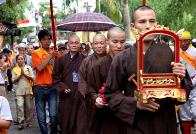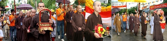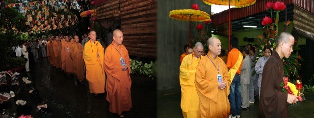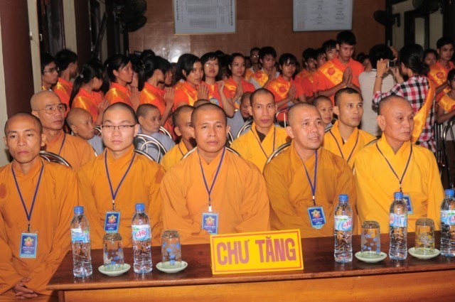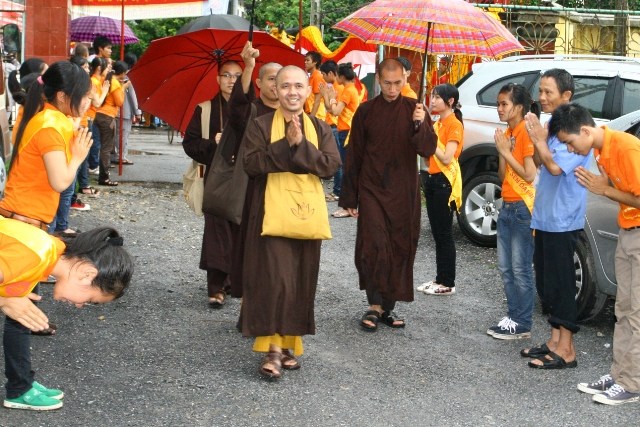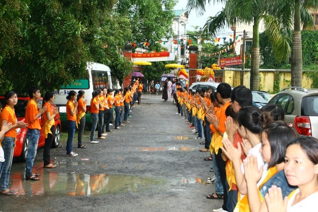 Đúng 17h30p chiều cùng ngày, tất cả chư Tăng Ni và các em trại sinh trong những màu áo đẹp nhất đã đứng ở cổng chùa chào đón đoàn đại biểu và các quý khách về thăm Hội trại và dự lễ khai mạc.