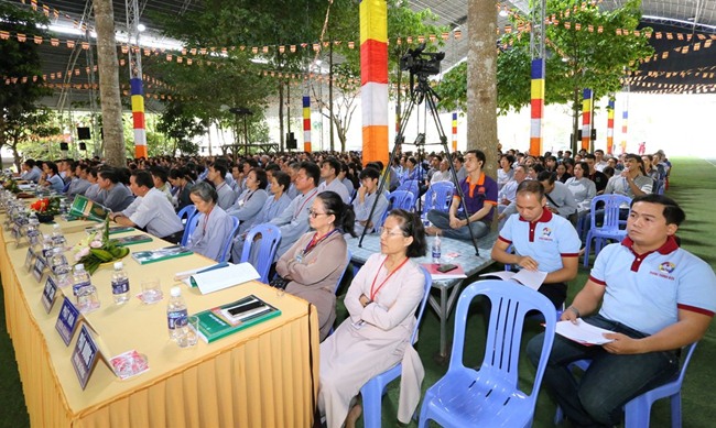 Tiếp theo, anh Nghiêm Châu – Phó Tổng Đạo Tràng Phật Quang, Chúng trưởng Đạo Tràng Phật Đồng (Đồng Tháp), và anh Trí Thành – Hội trưởng Hội Từ Thiện Phật Quang, Trợ lý Phó Tổng phụ trách Tổng Đạo Tràng Phật Quang, Chúng trưởng Đạo tràng Phật Hiển (Gò Công – Tiền Giang) cùng tuyên đọc báo cáo.