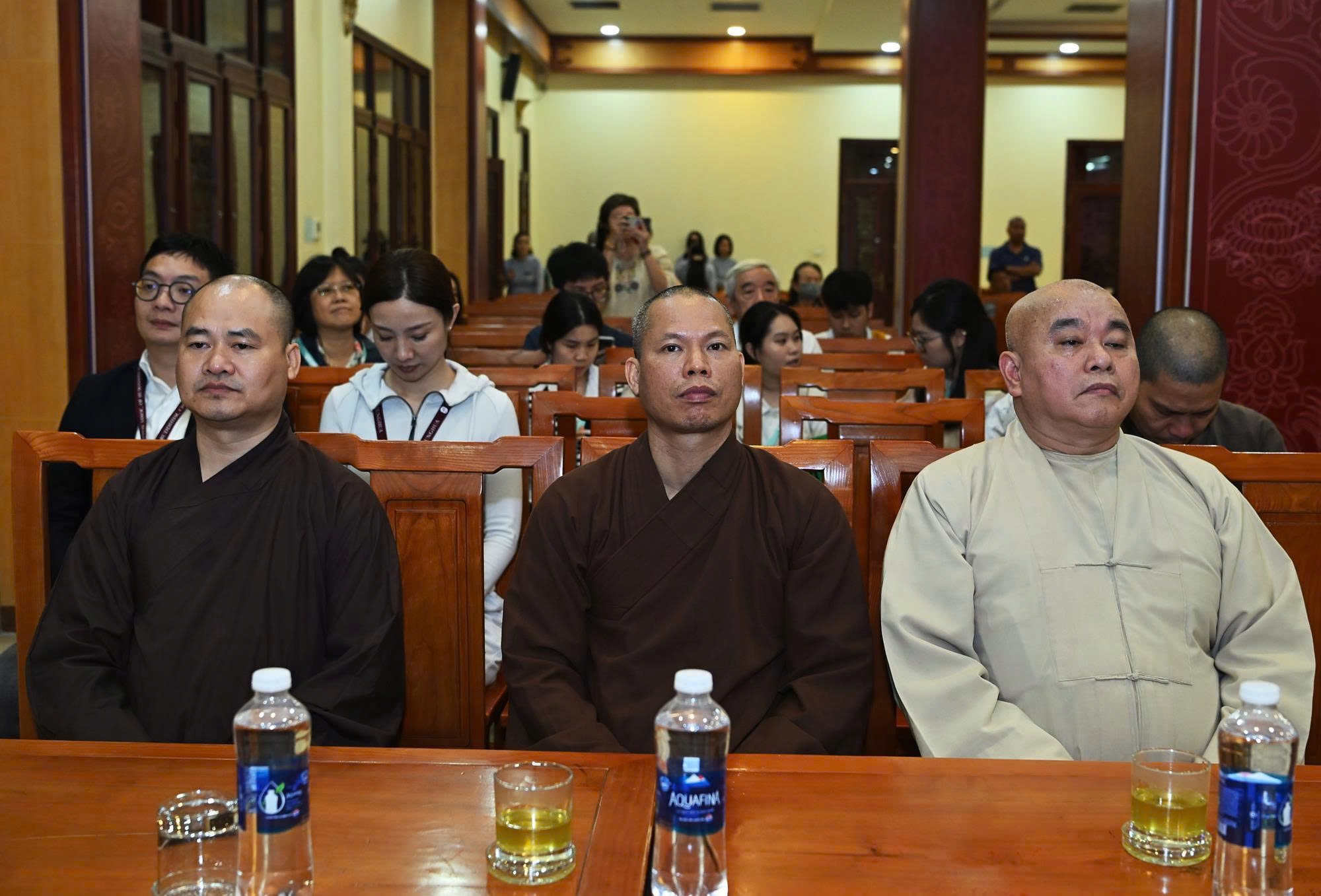 Tại buổi gặp mặt Trưởng lão Hòa thượng Thích Thanh Nhiễu – Ủy viên Thường trực HĐCM, Phó Chủ tịch Thường trực HĐTS cùng chư Tôn đức lãnh đạo Giáo hội đã dành cho đoàn sự đón tiếp trọng thị nhất. Tại buổi tiếp, Trưởng lão Hòa thượng Thích Thanh Nhiễu đã chia sẻ đầy tự hào về dòng chảy hơn 2.000 năm của Phật giáo Việt Nam – một truyền thống luôn đồng hành cùng dân tộc theo tinh thần “Hộ quốc an dân”.