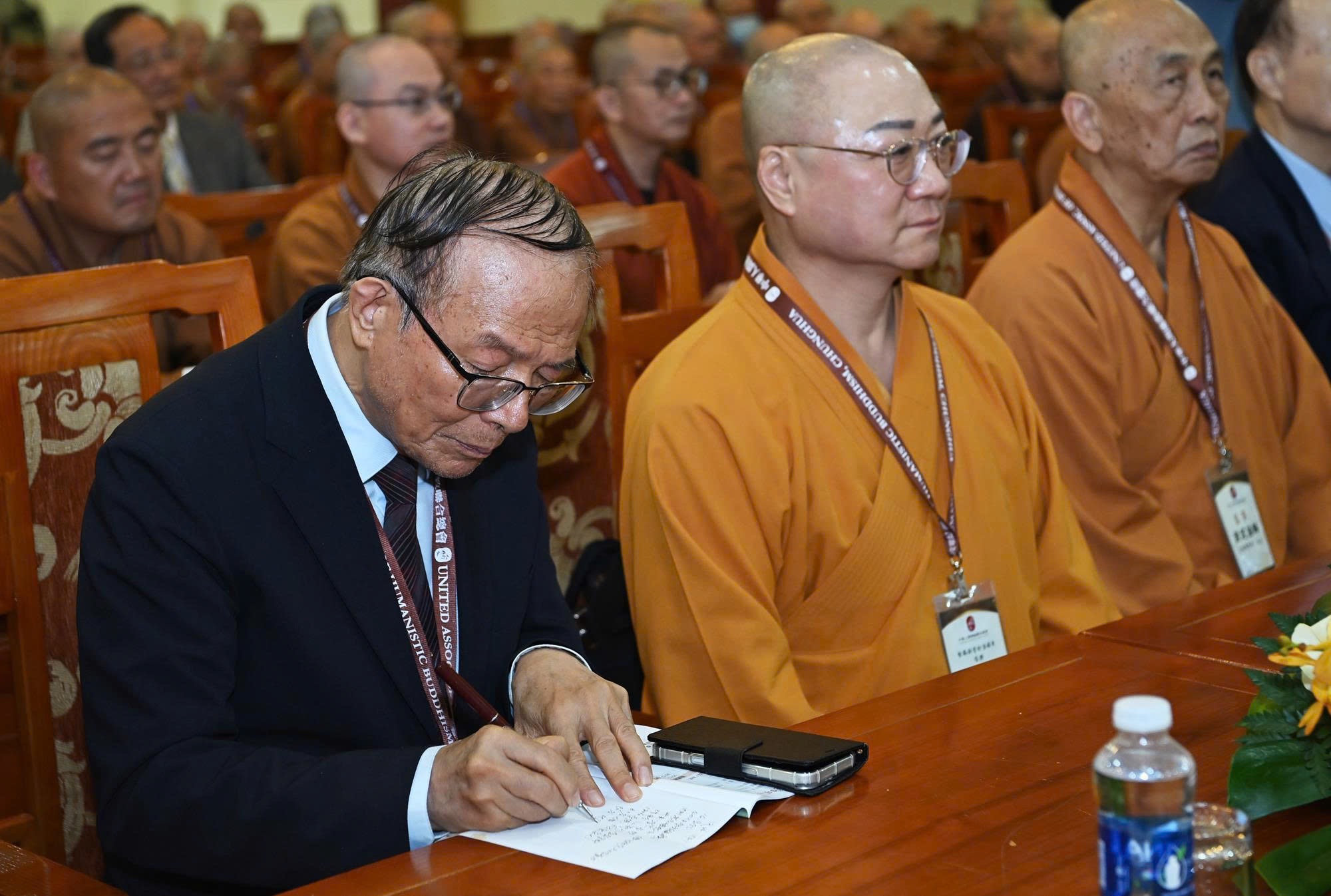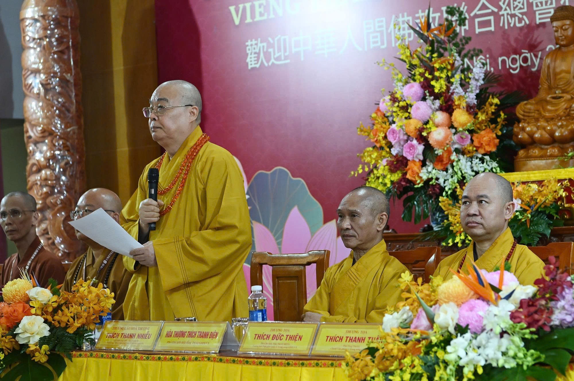 Phái đoàn Tổng hội Liên hiệp Phật giáo Nhân gian Trung Hoa do Hòa thượng Thích Tâm Bảo – Chủ tịch Tổng hội, Chủ tịch Hội đồng Điều hành Phật Quang Sơn làm Trưởng đoàn, cùng chư Tôn đức Tăng Ni và cư sĩ đến từ Đài Loan (Trung Quốc).