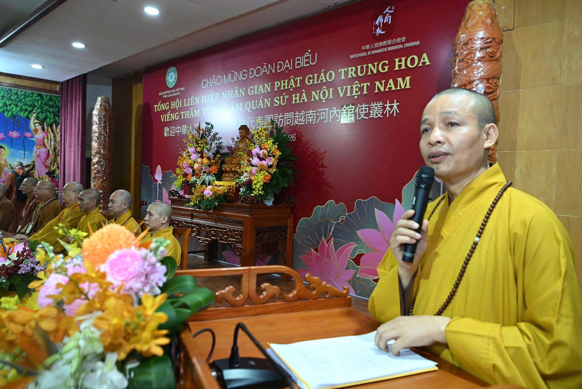 Chiều ngày 20/03/2026, trong không khí hân hoan của mùa xuân Bính Ngọ, Tùng Lâm Quán Sứ – trụ sở Trung ương Giáo hội Phật giáo Việt Nam (GHPGVN) đã trang nghiêm đón tiếp phái đoàn Tổng hội Liên hiệp Nhân gian Phật giáo Trung Hoa (Đài Loan – Trung Quốc) đến thăm và giao lưu chính thức. Chuyến thăm là cuộc gặp gỡ ngoại giao cho tình pháp lữ bền chặt, cùng hướng tới mục tiêu hoằng dương chính pháp trong thời đại mới.