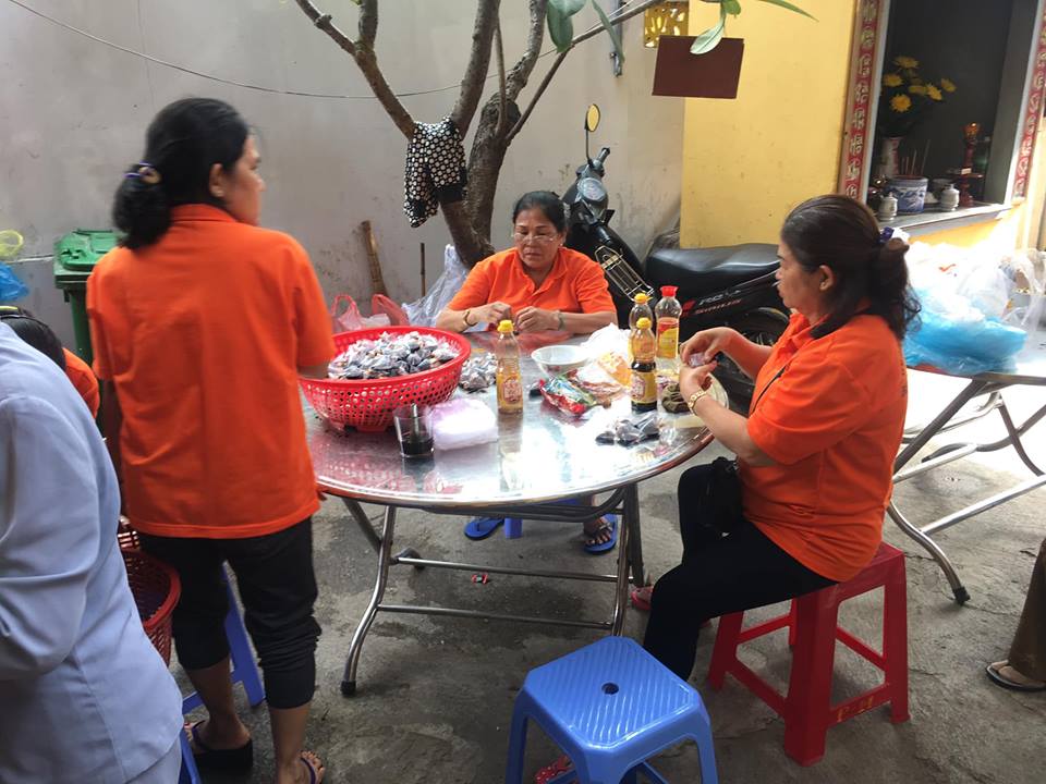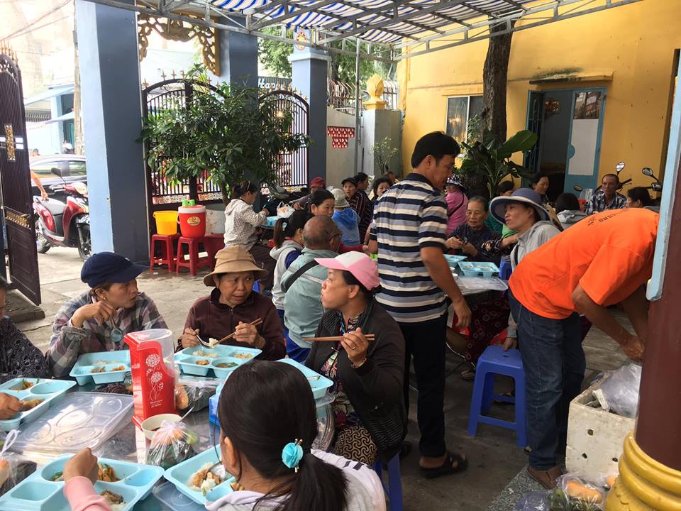 Thượng tọa Thích Thiện Phước chia sẻ: bếp ăn từ thiện phục vụ mỗi tháng 2 lần vào ngày mùng một và 15 âm lịch, kết duyên lành cho bà con Phật tử ăn chay giảm trừ nghiệp sát. Hôm nay  bếp ăn phục vụ trên 600 thực khách. Trong thời gian qua bếp ăn  phục vụ  trên 5 ngàn phần cơm chay, ăn tại chỗ và mang về nhà.. Thực phầm được sự trợ duyên của Phật  tử nên thay đổi thường xuyên: cơm trắng, bánh mì, canh rau,  cà rốt và su xào đậu, canh bí đỏ đậu phụng, canh bí xanh, đậu hủ kho. nấm kho, rau muống chiên, rong biên, kim chi, xôi, chuối, ngày tổng kết hôm nay có quà bánh chưng đem về.
