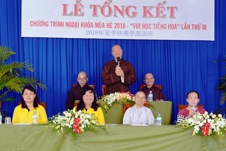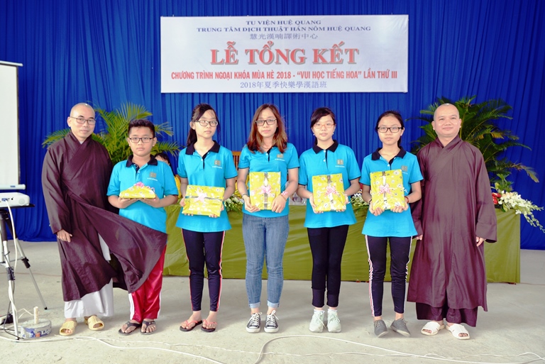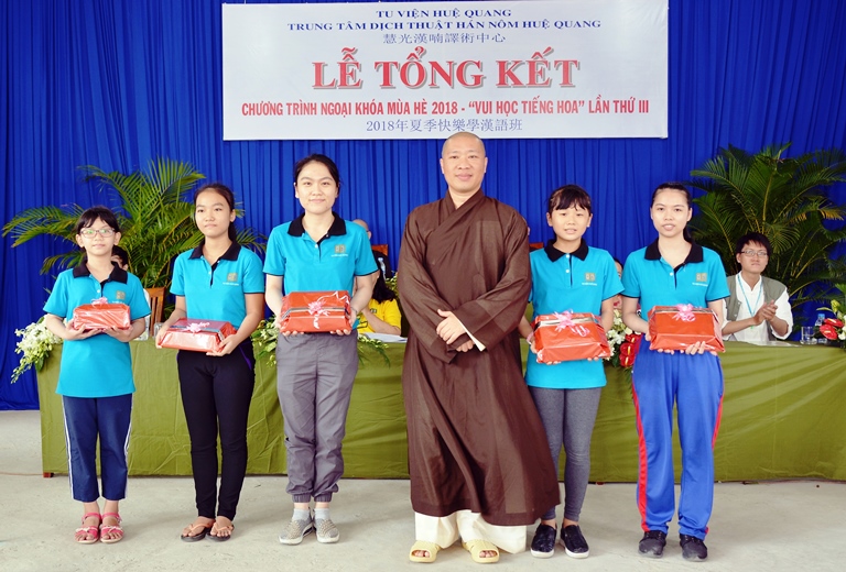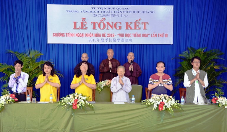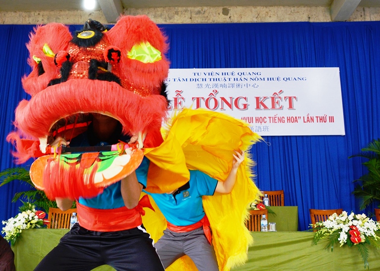 Buổi lễ có sự chứng minh vả tham dự của TT.Thích Thiện Thuận, Đại Đức Thích Nguyên Trang – đồng Phó giám đốc Trung Tâm Dịch Thuật Hán Nôm Huệ Quang, ĐĐ.Thích Minh Thuận – Chuyên trách VP Học Vụ Lớp DTHN HQ, Quý thầy cô giảng, cùng sự hiện diện của quý phụ huynh và gần 100 em học viên chương trình Vui Học Tiếng Hoa.