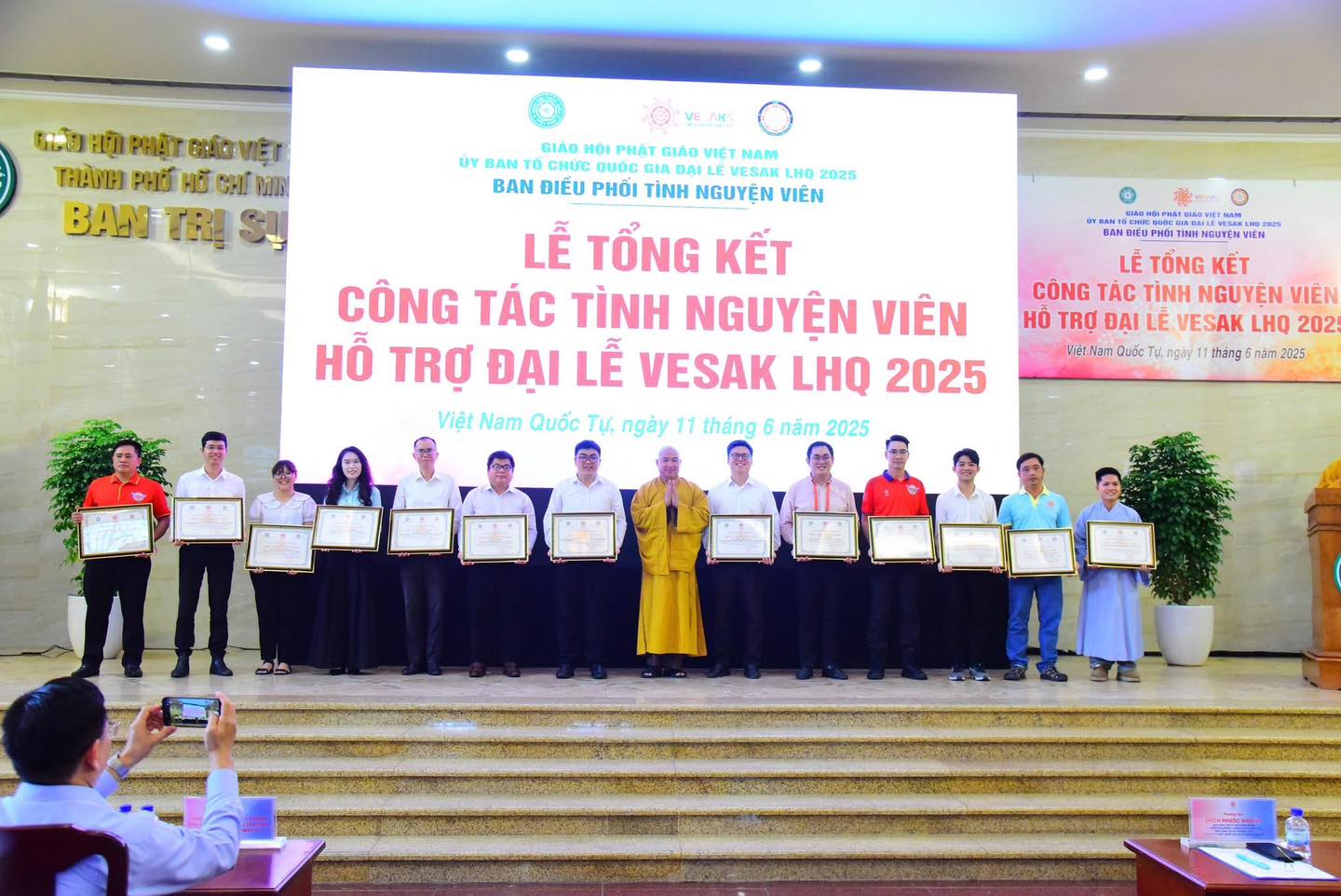 Sáng ngày 11/6/2025 (nhằm ngày 16 tháng 5 năm Ất Tỵ), tại Việt Nam Quốc Tự (quận 10, TP.HCM), Ban Điều phối Tình nguyện viên – Ủy ban Tổ chức Quốc gia Đại lễ Vesak Liên Hợp Quốc 2025 – đã long trọng tổ chức Lễ Tổng kết công tác hỗ trợ Đại lễ Vesak.