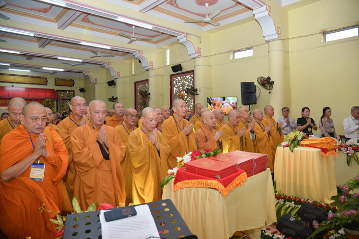 Quang lâm chứng minh và tham dự buổi lễ có: Trưởng lão HT.Thích Thiện Nhơn – Chủ tịch HĐTS GHPGVN; HT.Thích Bảo Nghiêm – phó Chủ tịch HĐTS, Trưởng BHPTW; HT.Thích Quang Nhuận – UV TT HĐTS, phó ban thường trực BHPTW; HT.Thích Tấn Đạt – Ủy viên Thư ký HĐTS, phó ban thường trực BHPTW, trưởng Ban tổ chức; HT.Thích Huệ Thông – phó tổng Thư ký kiêm Chánh văn 2 TWGH; cùng Chư tôn đức giáo phẩm HĐTS; Ban viện TWGH; BHPTW, Tăng Ni sinh 2 Lớp đạo tạo Cao – Trung cấp Giảng sư và đại diện Ban tôn giáo Chính phủ, Cục nội địa Bộ công an; Ban dân vận TP.HCM, Ban tôn giáo TP.HCM;…