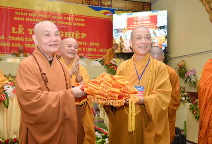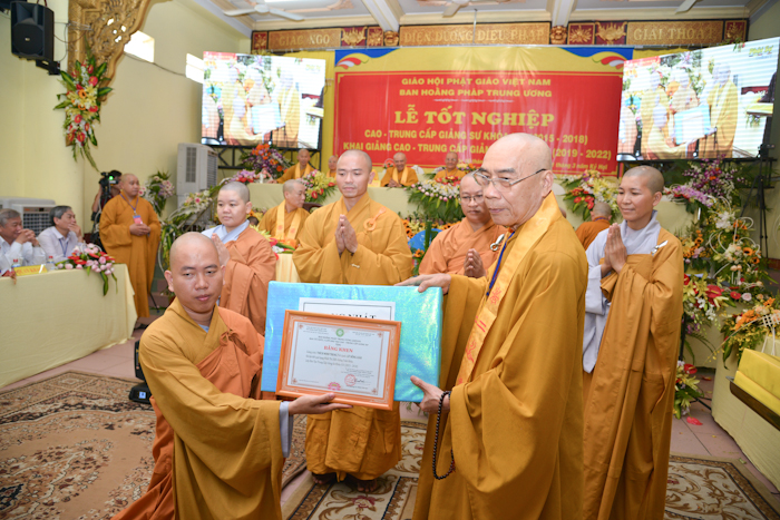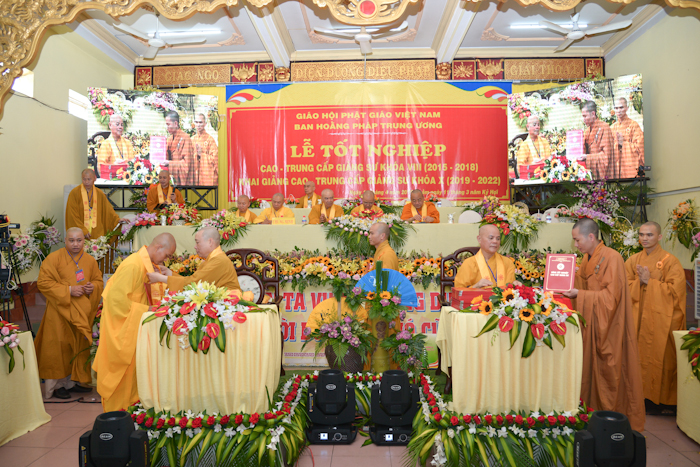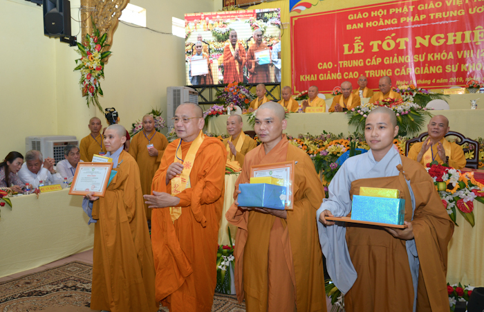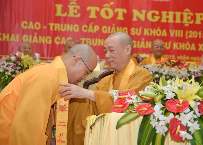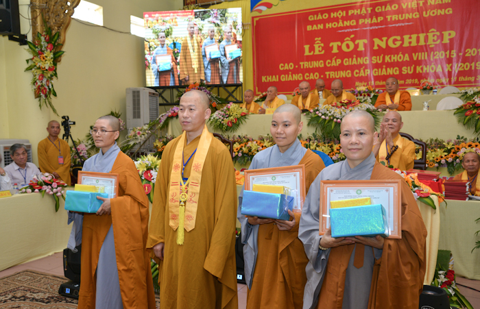 Tại buổi lễ, 93 học viên 2 Lớp đào tạo Cao – Trung cấp Giảng sư khóa VIII đã bước lên đón nhận bằng tốt nghiệp từ HT.Thích Tấn Đạt – Trưởng ban điều hành Lớp đạo tạo Giảng sư. Cùng đó, Tăng Ni sinh tốt nghiệp cũng đón nhận pháp y truyền thừa từ HT.Thích Bảo Nghiêm – Trưởng ban hoằng pháp TWGH, từ đây Tăng Ni sinh sẽ tiếp tục tiếp nối sự nghiệp hoằng truyền chánh pháp của Đức Phật, của Chư Tổ và Chư tôn đức giáo thọ sư đã trao truyền.