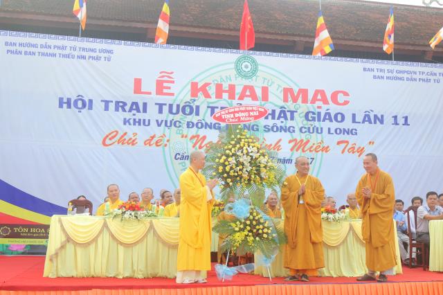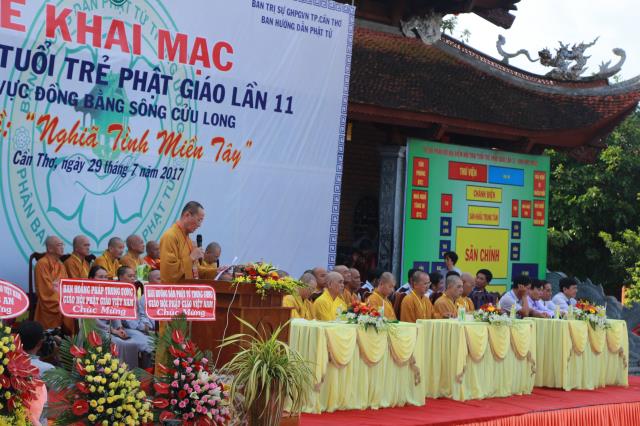 Ông Nguyễn Thanh Kiệt, Phó trưởng Ban Tôn giáo sở Nội vụ TP. Cần Thơ, đại diện chính quyền địa phương sở tại phát biểu chúc mừng. Ông cho biết, “dân tộc Việt Nam luôn ghi nhận sự đóng góp to lớn mà Phật giáo đã thực hiện trong mấy ngàn năm qua. Với phương châm; đạo pháp, dân tộc, chủ nghĩa xã hội, Phật giáo đã không ngừng vươn lên, hòa mình với đất nước mang an bình hạnh phúc đến cho muôn dân. Chúng tôi mong rằng, Hội trại tuổi trẻ Phật giáo chính là cơ hội khơi dậy tinh thần truyền thống dân tộc, bảo vệ và phát huy các truyền thống văn hóa trong tình yêu nước, hộ đạo giúp đời và làm cho đời sáng tươi”.