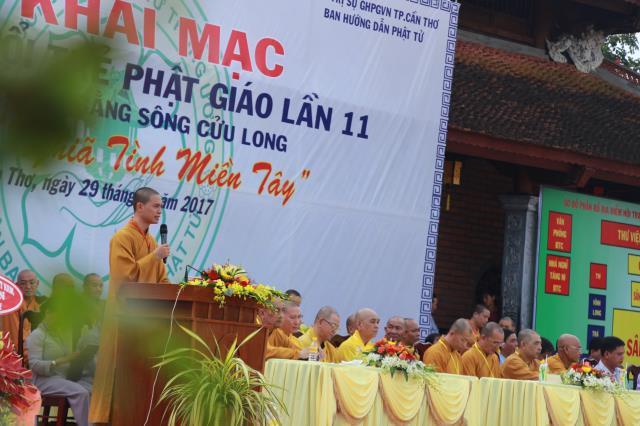 Chúng tôi, BTC Hội trại “Tuổi trẻ – Phật giáo” lần thứ XI tin rằng, với khát vọng và nhiệt huyết, với khả năng và sự nhạy bén của tuổi trẻ, các bạn sẽ biết cách nắm bắt cơ hội, thể hiện mình một cách tốt nhất, sống đạo đức, nghĩa tình, là người con hiền cháu thảo trong gia đình, con ngoan trò giỏi trong nhà trường, và là tương lai rạng ngời của đạo pháp, của dân tộc Việt Nam. Giờ phút này, thay mặt BTC, chúng con chúng tôi trân trọng tuyên bố khai mạc Hội trại “Tuổi trẻ – Phật giáo” lần thứ XI, năm 2017 với chủ đề “Nghĩa Tình Miền Tây”. Kính chúc Hội trại thành công tốt đẹp”.
