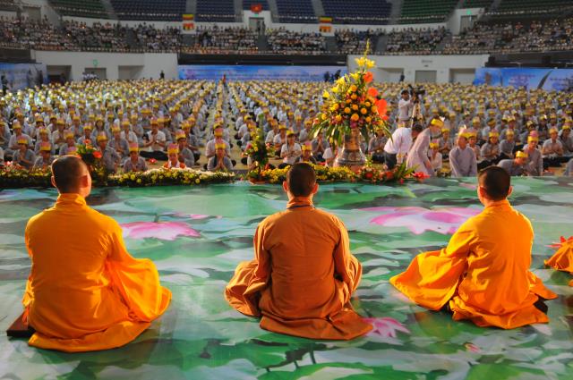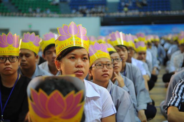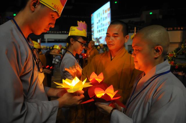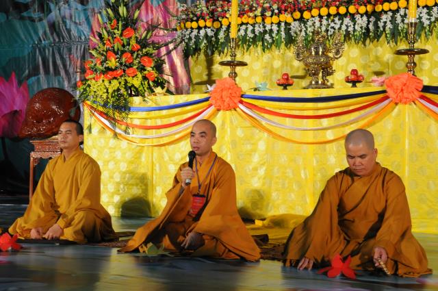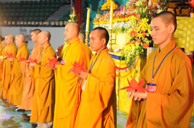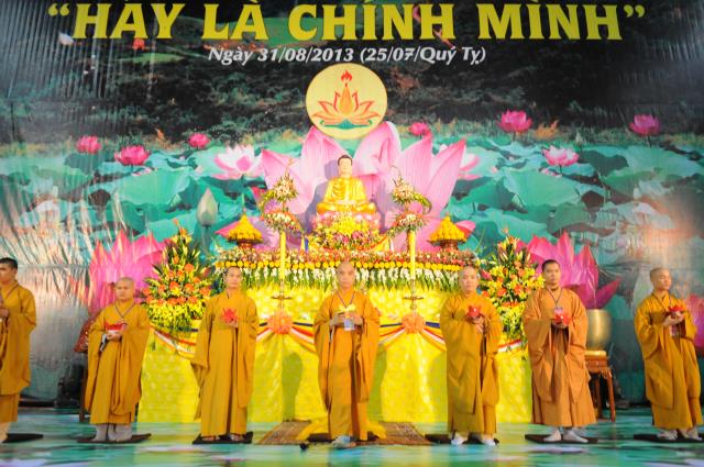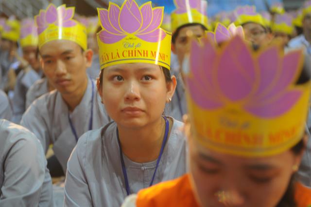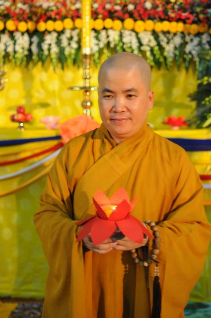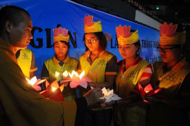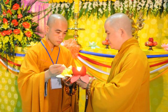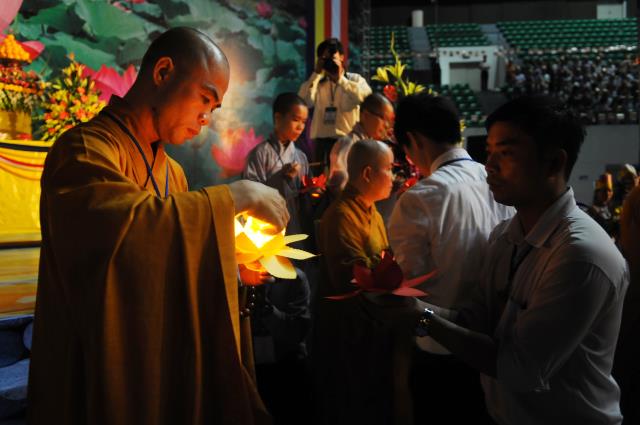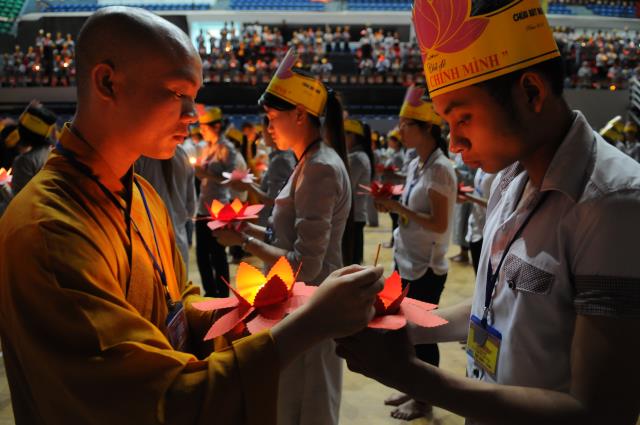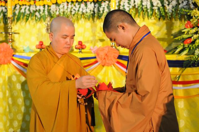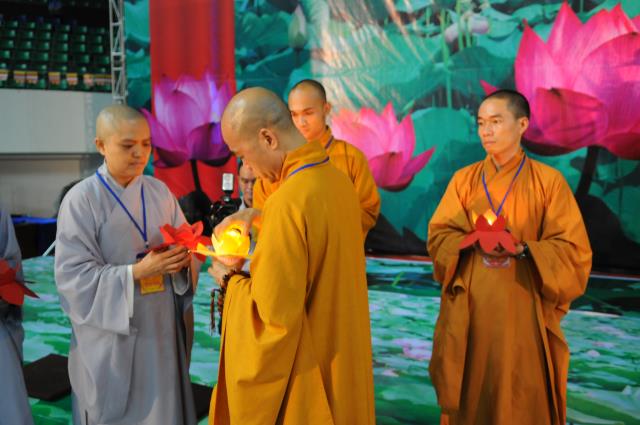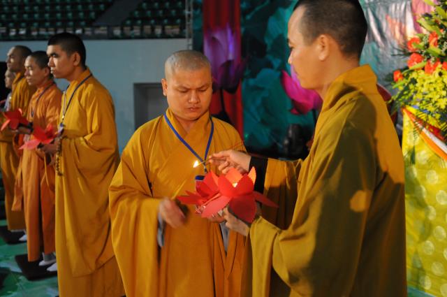 Trong không gian tĩnh mặc, toàn thể hội chúng lắng đọng tâm tư, Đại đức Thích Chúc Tín  cung kính nhận ánh sáng từ ngôi Tam Bảo truyền đến chư tôn đức , tượng trưng cho ngọn lửa giáo pháp, trí tuệ, ngọn lửa tri ân, lan tỏa truyền xuống cho các khóa sinh.