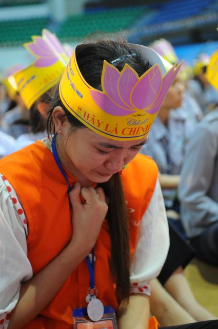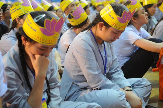 Không gian trầm lắng trong ánh nến vàng hiu hắt, thì thầm bên tai là những lời tri ân do sư cô Hương Nhũ đọc, những dòng cảm tưởng về công lao cha mẹ, những tiếng sụt sùi, những ánh mắt đỏ hoe, những cánh tay quệt quệt hai hàng nước mắt  tất cả như giọt nước tràn ly vỡ òa trong thương nhớ, sự nhớ nhung về mái ấm gia đình, nhớ vòng tay của mẹ, nụ hôn với cái xoa đầu của cha,…