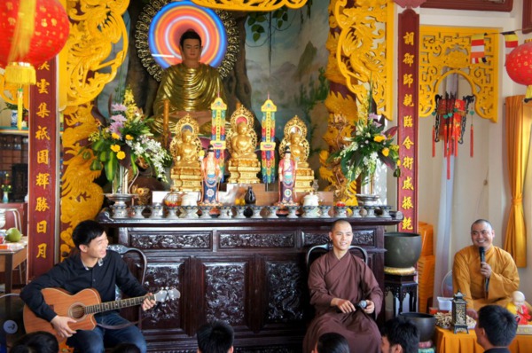 Kế tiếp là phần sinh hoạt nhạc khúc Thiền ca và giao lưu với Ca sĩ Hà Okio với sự chia sẻ của anh về vấn đề ăn chay có lợi cho sức khỏe và tăng trưởng lòng từ bi.