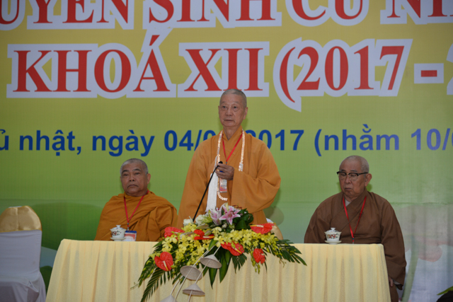 Phát biểu khai mạc kỳ thi, Hòa thượng Viện trưởng nhắc nhở Tăng, Ni sinh noi gương phẩm hạnh đạo đức, phụng sự dấn thân vì sự nghiệp Giáo dục Phật giáo của Chư tổ, tiền bối hữu công đi trước như Tổ Khánh Hòa, Trưởng lão HT.Thích Minh Châu mà không ngừng nổ lực tinh tấn tu học. Để mai này, lấy kiến thức đã được truyền trao để phụng sự chúng sanh, giúp đỡ Giáo hội và hoằng dương chánh pháp. Cuối lời, Hòa thượng gởi lời chúc phúc đến toàn thể Tăng, Ni sinh tham dự kỳ thi năm này đạt được kết quả tốt.