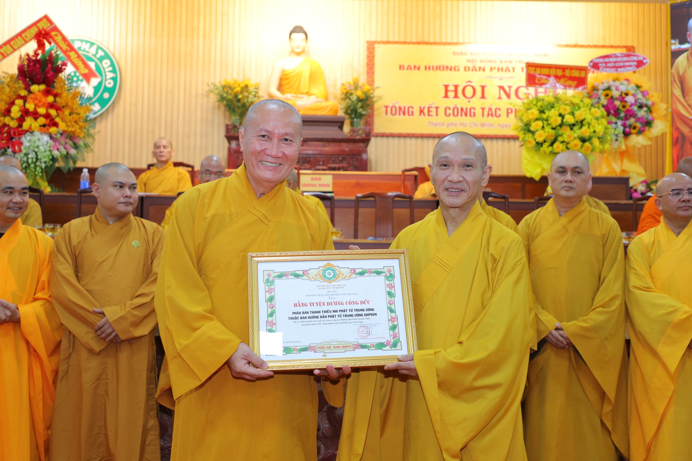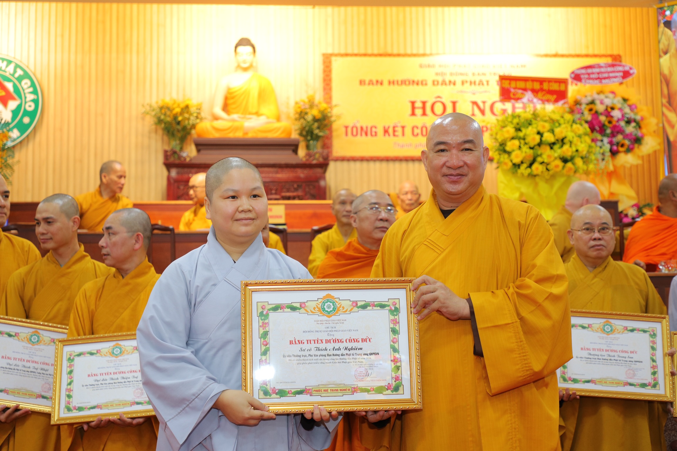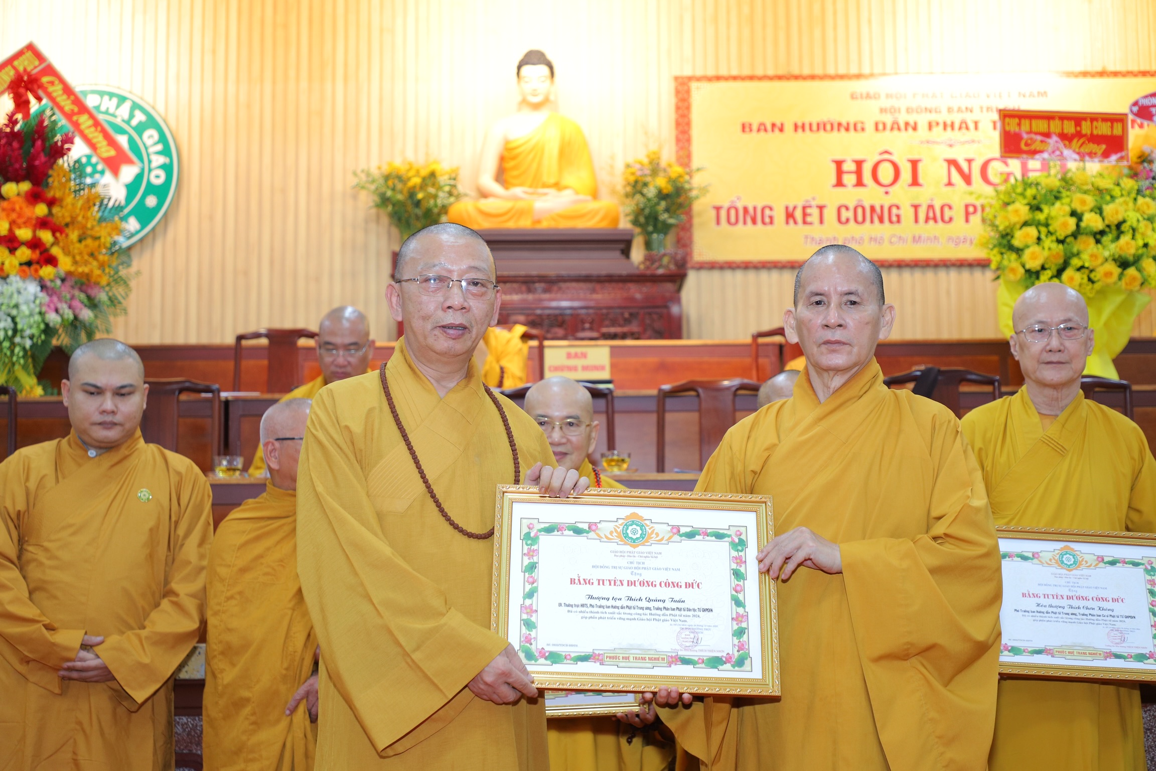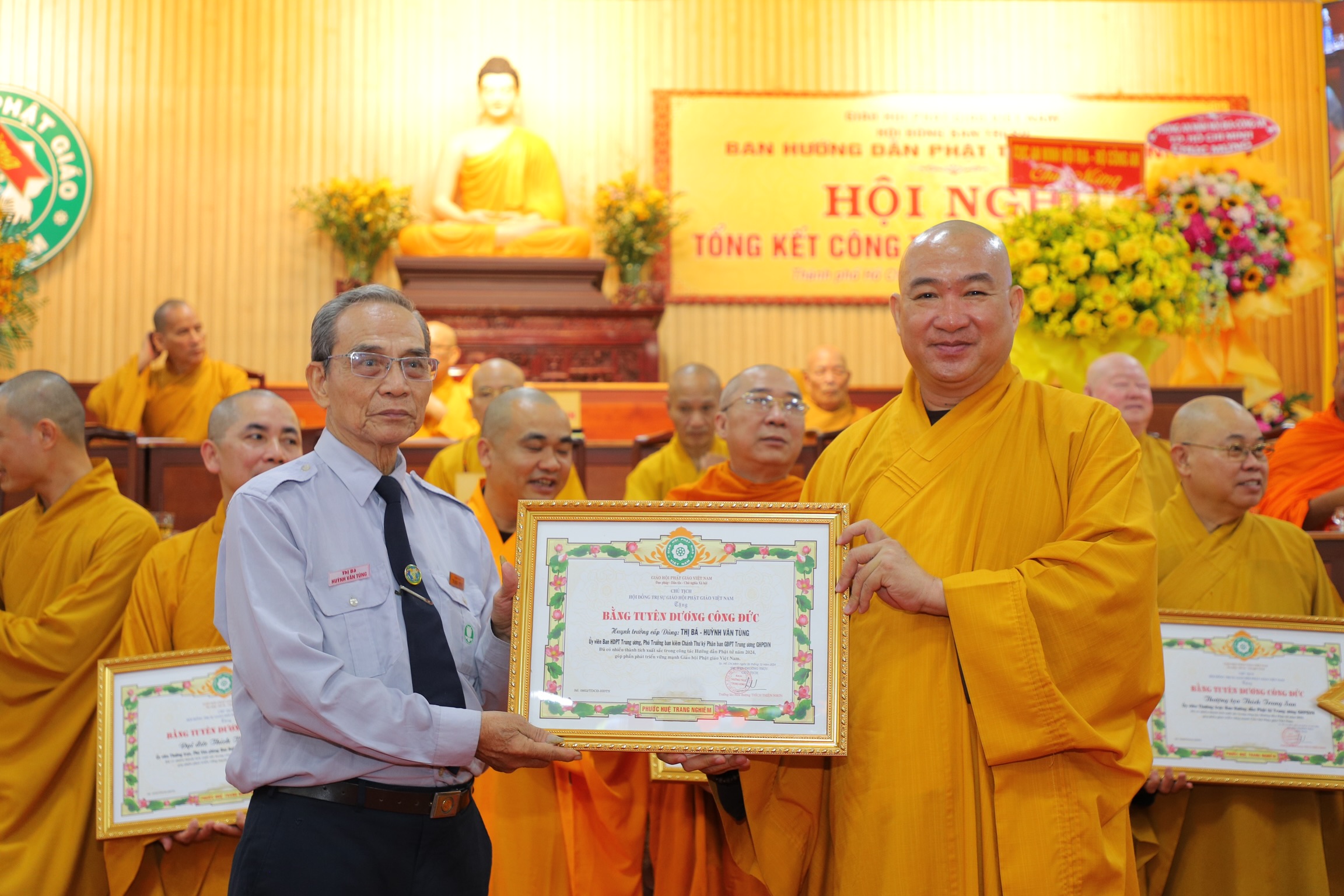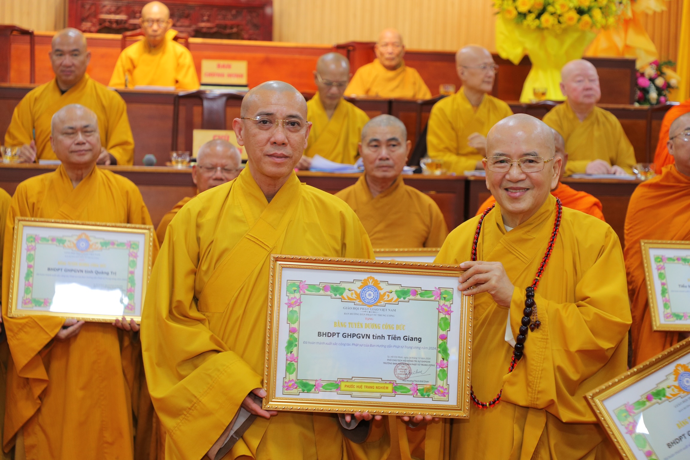 Tại hội nghị, TƯGH tặng Bằng tuyên dương công đức đến 15 tập thể và 34 cá nhân thuộc Ban Hướng dẫn Phật tử T.Ư; Ban Hướng dẫn Phật tử T.Ư tặng Bằng tuyên dương công đức đến nhiều tập thể và cá nhân đã hoàn thành xuất sắc công tác Phật sự của Ban năm 2024.