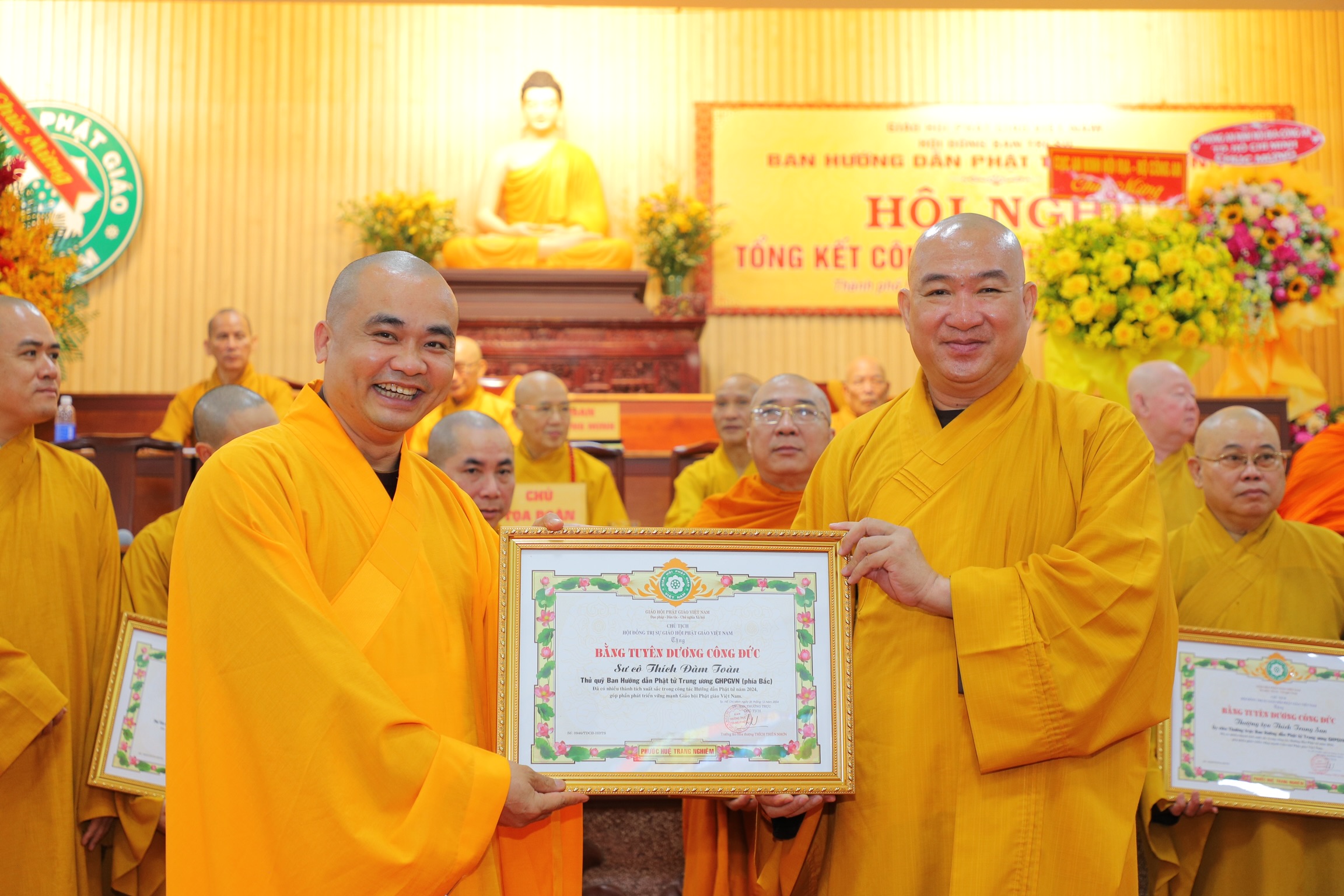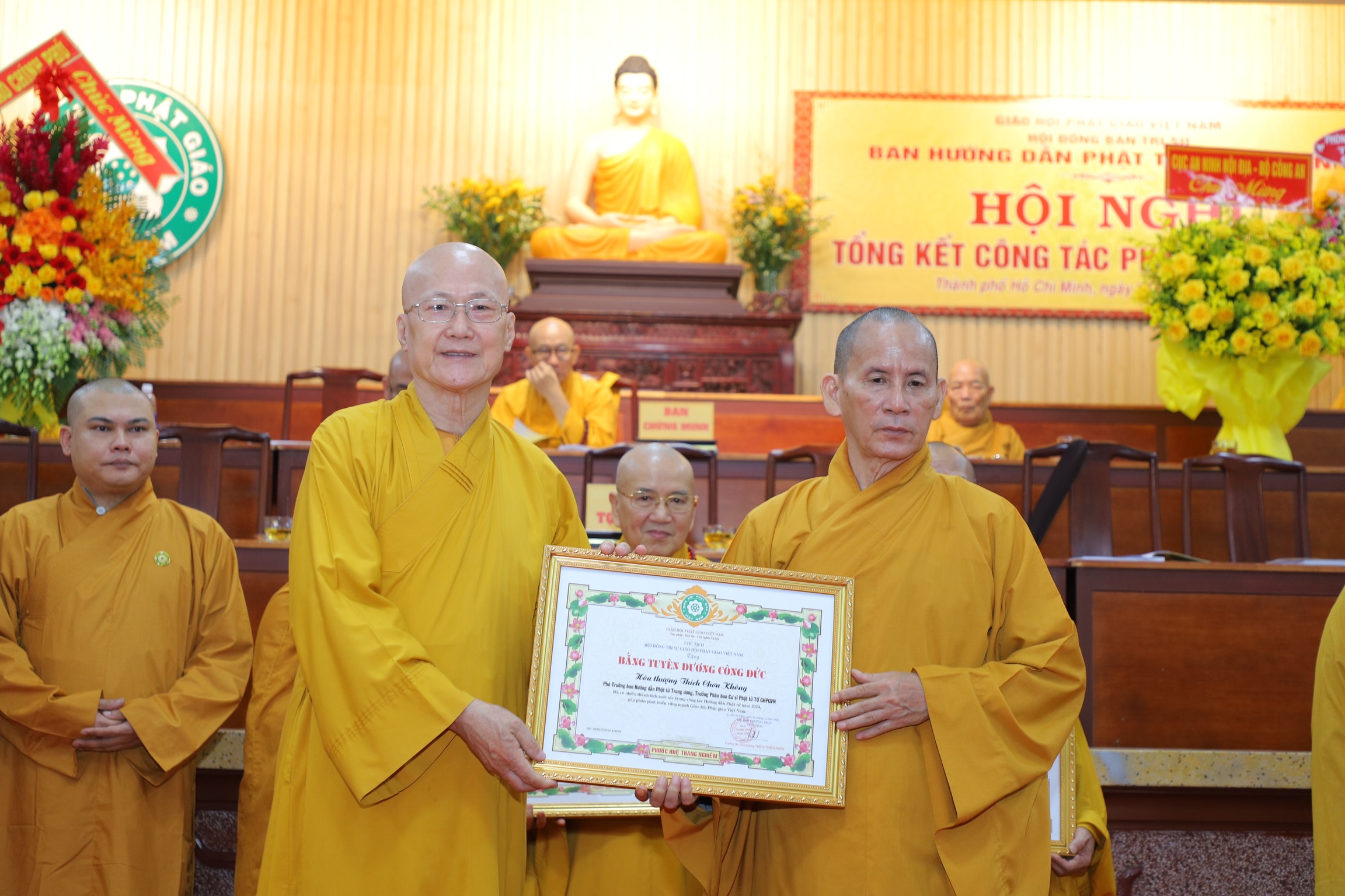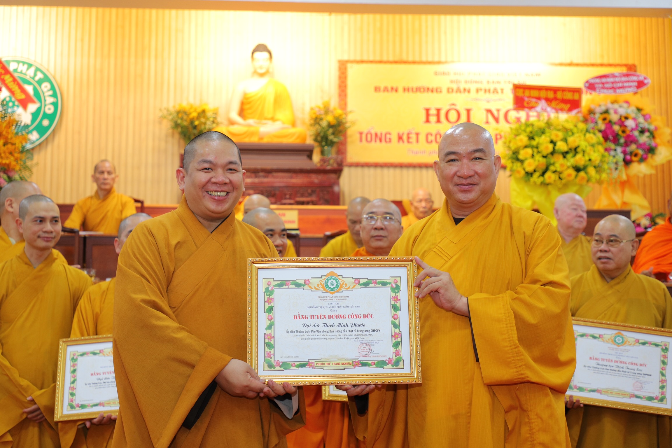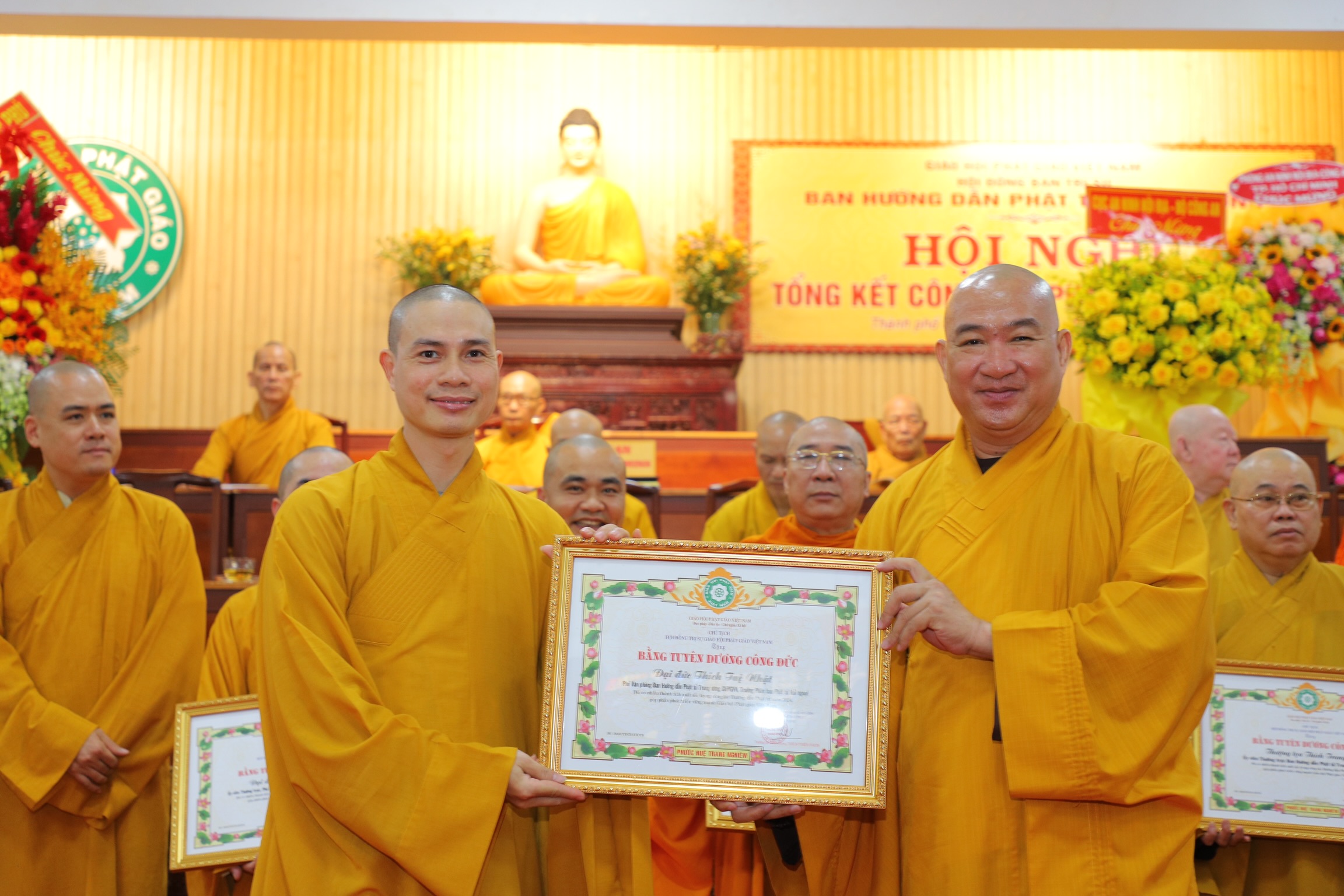 Tại hội nghị, TƯGH tặng Bằng tuyên dương công đức đến 15 tập thể và 34 cá nhân thuộc Ban Hướng dẫn Phật tử T.Ư; Ban Hướng dẫn Phật tử T.Ư tặng Bằng tuyên dương công đức đến nhiều tập thể và cá nhân đã hoàn thành xuất sắc công tác Phật sự của Ban năm 2024.